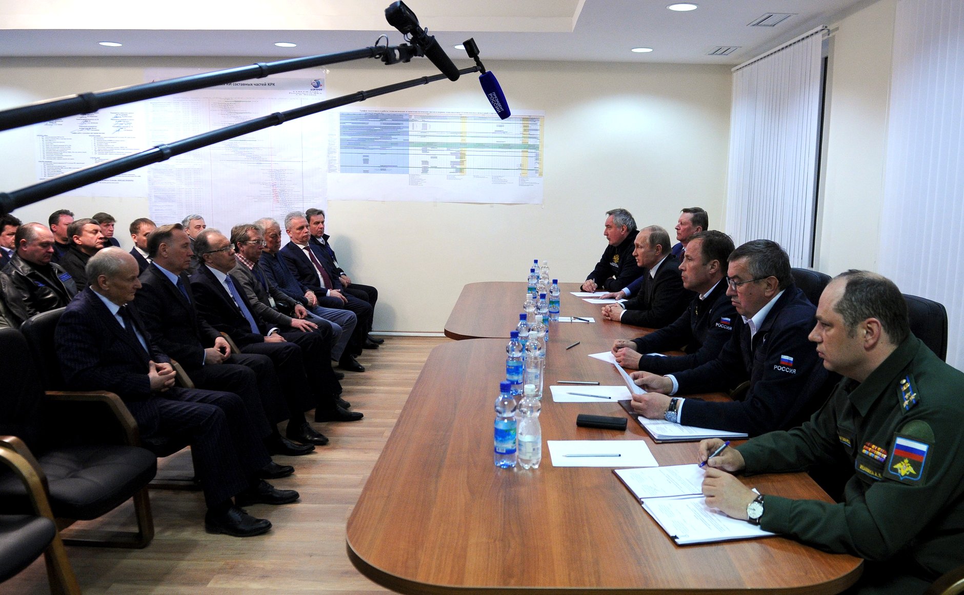 Le Président Vladimir POUTINE s'est rendu sur le cosmodrome de Vostotchnyi le 27 avril 2016 pour assister au vol inaugural du lanceur Soyouz-2.1a sur cette base, prévu à l'origine le jour-même. Il a atterri sur l'aéroport de Blagovechtchensk, puis s'est rendu sur le cosmodrome en hélicoptère. Il était notamment accompagné de Dmitri ROGOZINE, vice-Premier Ministre, et d'Igor KOMAROV, directeur général de Roscosmos. Vidéo 1 : Réunion de la Commission d'État. La chronologie de lancement est interrompue automatiquement à H0-90" à la suite d'une défaillance technique. Vladimir POUTINE a décidé de prolonger sa visite de vingt-quatre heures et, en attendant la seconde tentative, il se rend à Blagovechtchensk. Le lancement se déroule avec succès le 28 avril 2016. Vidéo 2 : Lancement de Soyouz-2. Dernière mise à jour : 28 mai 2025 |