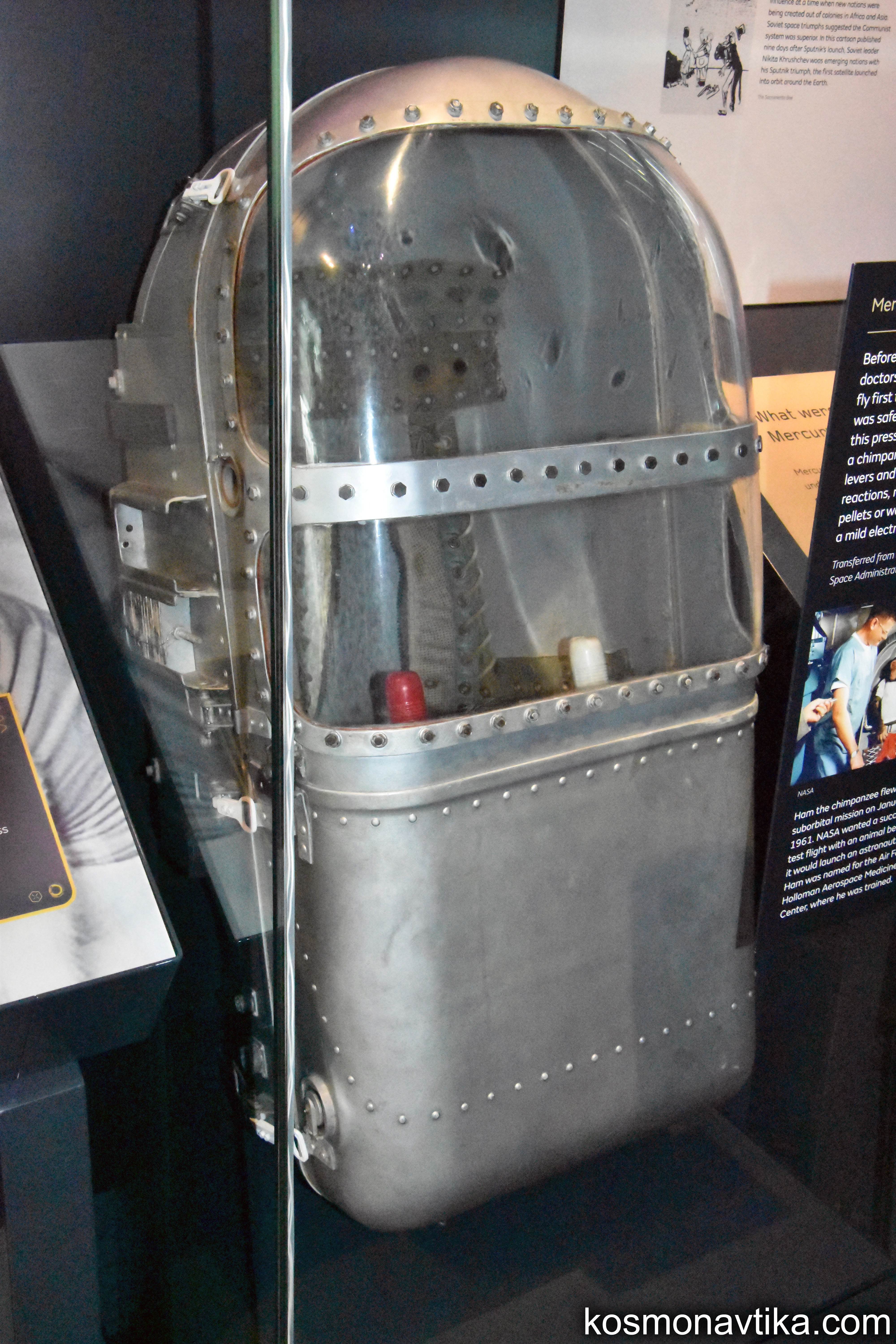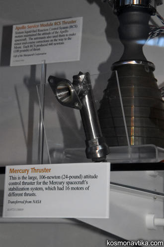 Mercury | Divers1. Container biologiqueLe container dans lequel a volé le chimpanzé Ham le 31 janvier 1961 est exposé au Musée National de l'Air et de l'Espace de Washington DC, aux États-Unis. 2. MoteursDeux moteurs de direction du vaisseau Mercury sont exposés au Centre Steven F. Udvar-Hazy de Chantilly, en Virginie, aux États-Unis. 3. Matériel d'entraînementLa couchette d'entraînement utilisée par John GLENN dans le simulateur du vaisseau Mercury est exposée au Musée National de l'Air et de l'Espace de Washington DC, aux États-Unis.