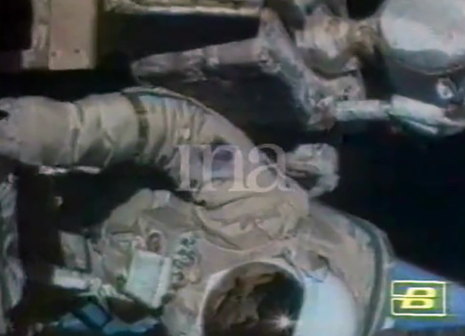 Fig. 6.1 : L'un des cosmonautes installe la