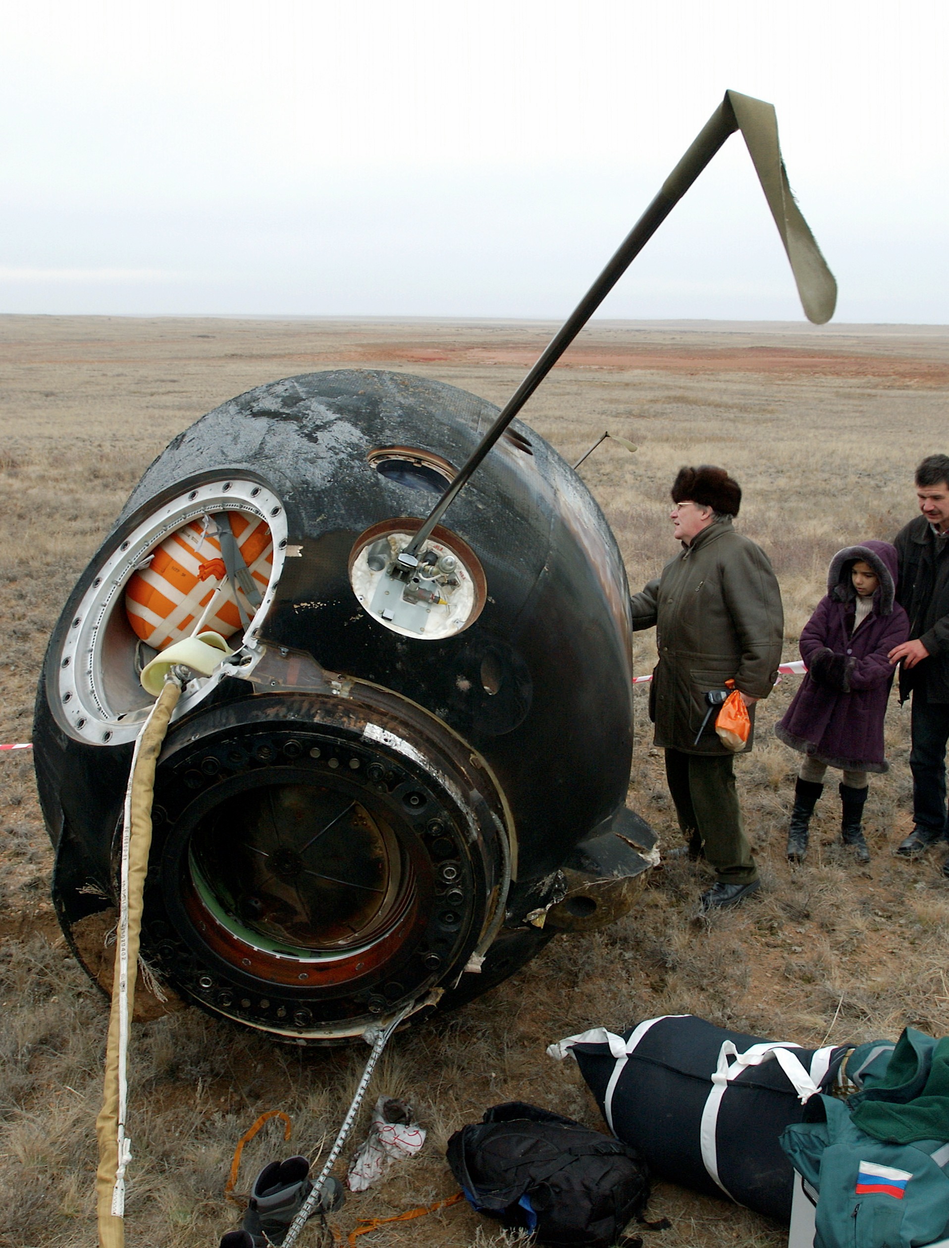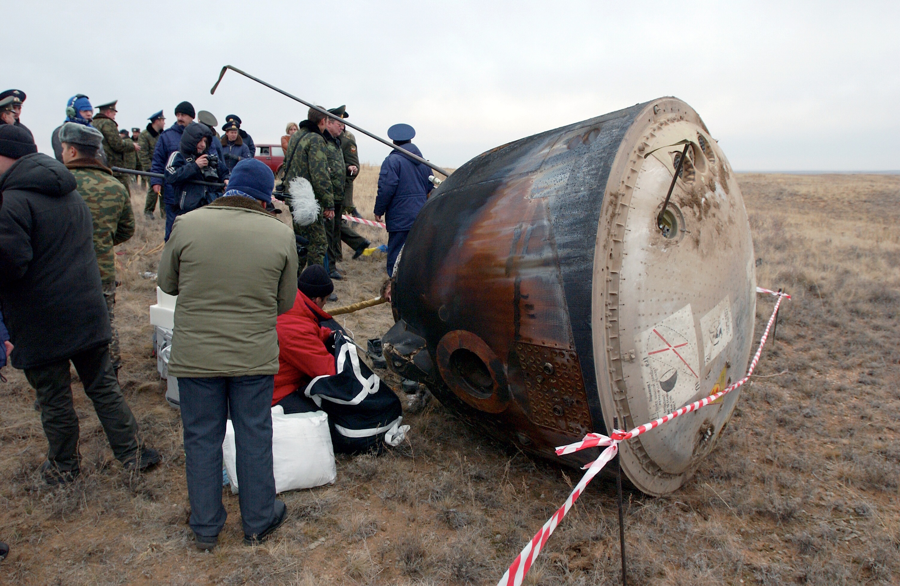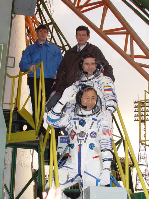 Baïkonour, 26 avril 2003 : Soyouz TMA-2 approche de la station, 28 avril 2003 : Séparation de Soyouz TMA-2, 27 octobre 2003 : Atterrissage de Soyouz TMA-2, 28 octobre 2003 : Crédit : NASA, RKK Energiya |