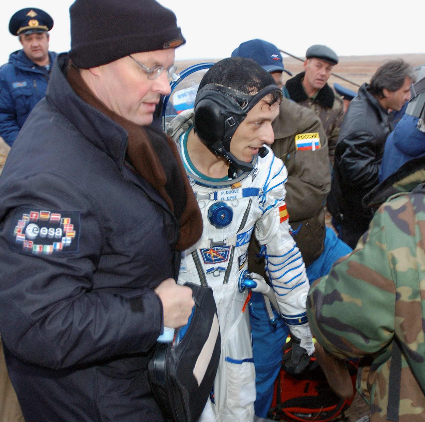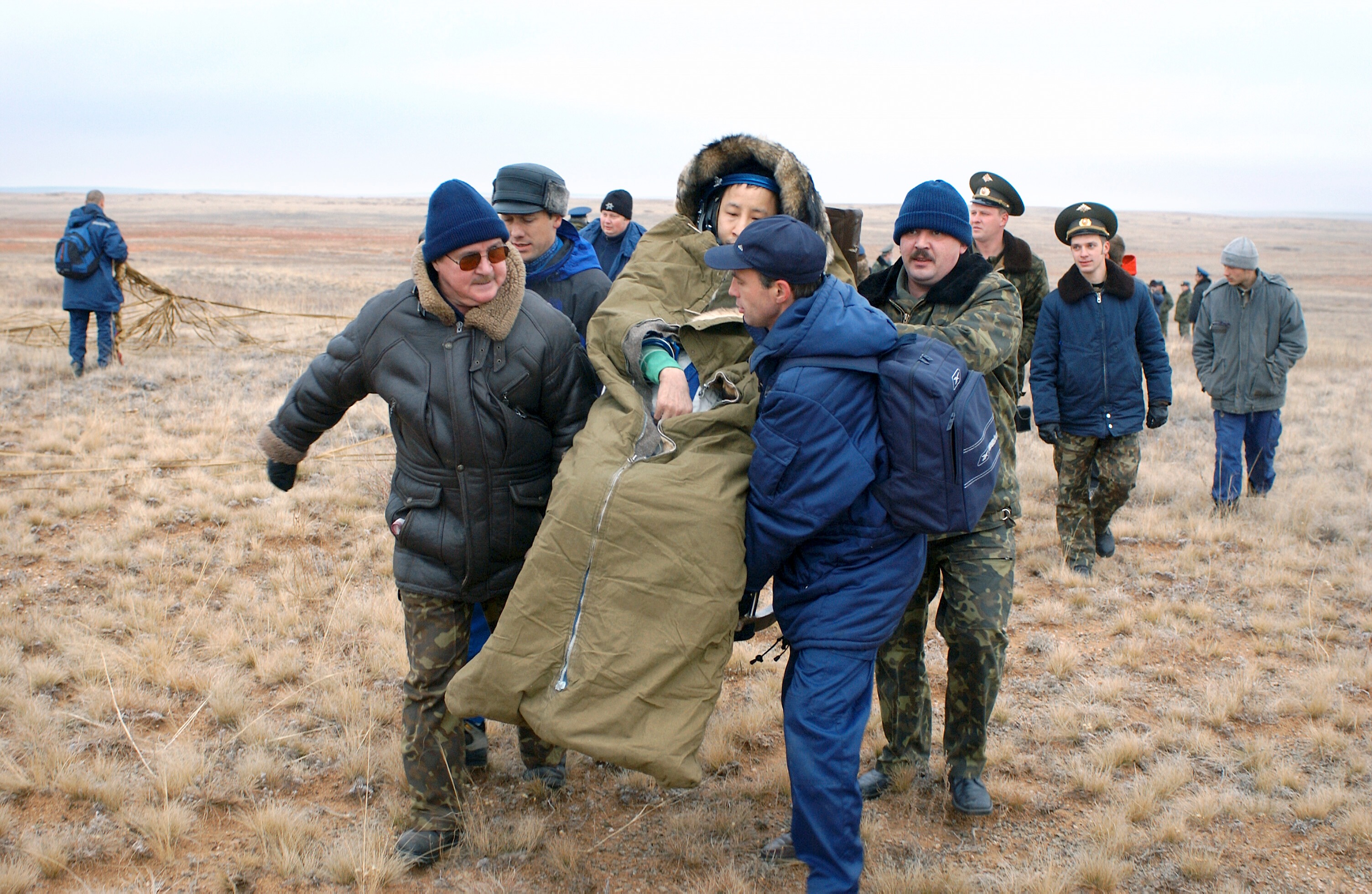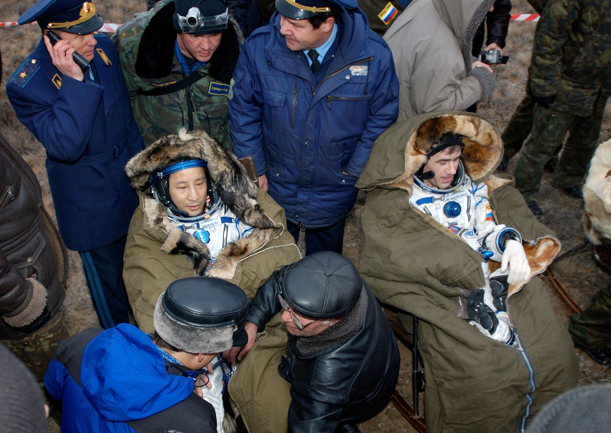Baïkonour, 26 avril 2003 : Soyouz TMA-2 approche de la station, 28 avril 2003 : Séparation de Soyouz TMA-2, 27 octobre 2003 : Atterrissage de Soyouz TMA-2, 28 octobre 2003 : Crédit : NASA, RKK Energiya |