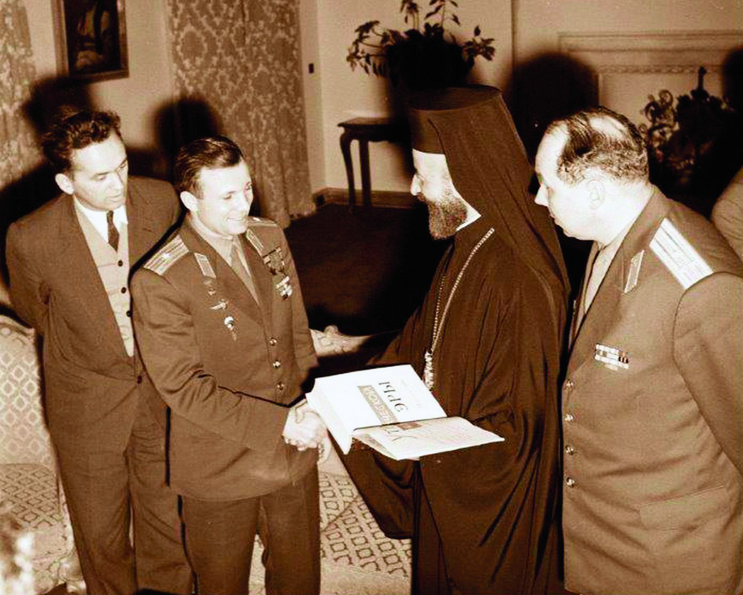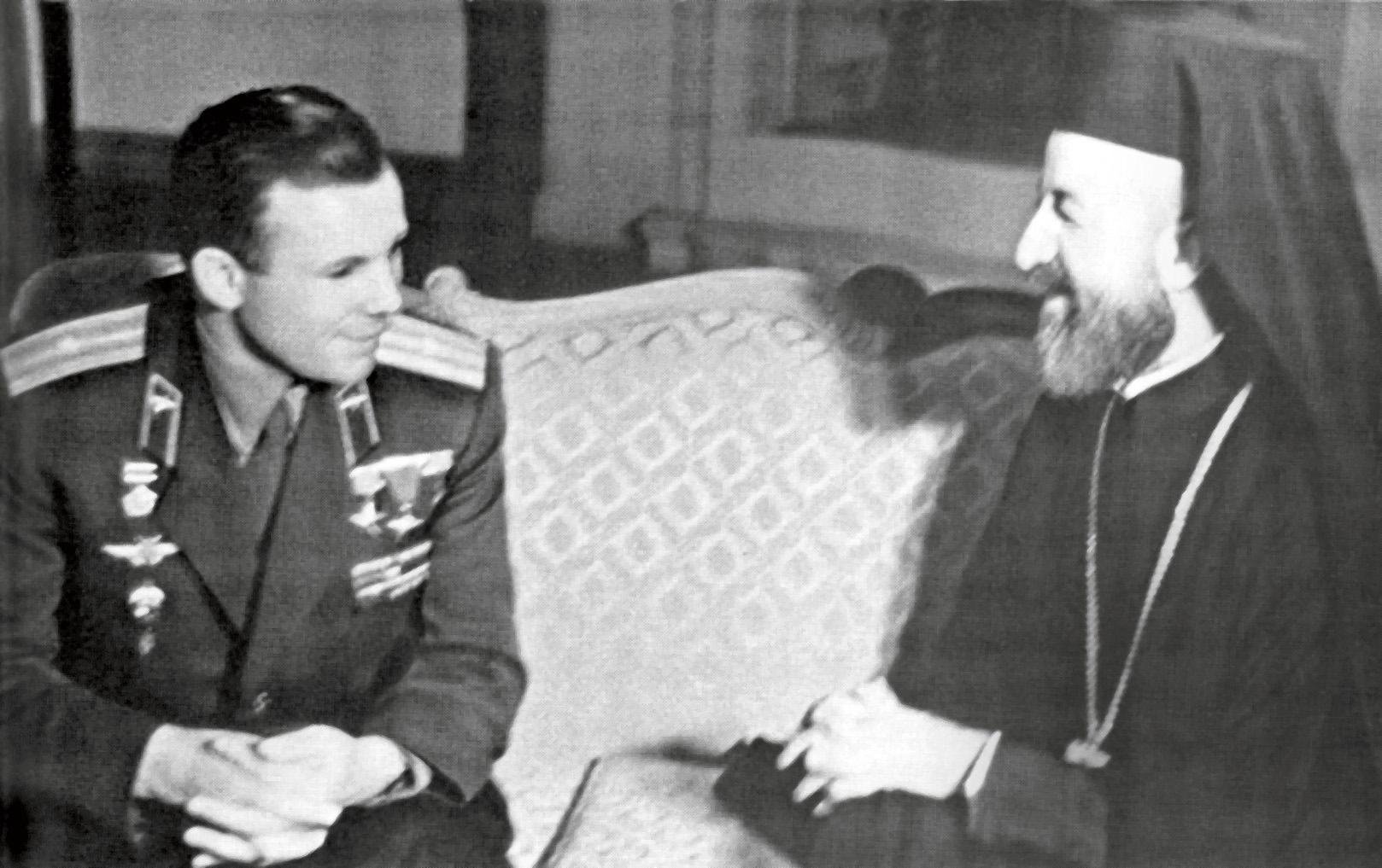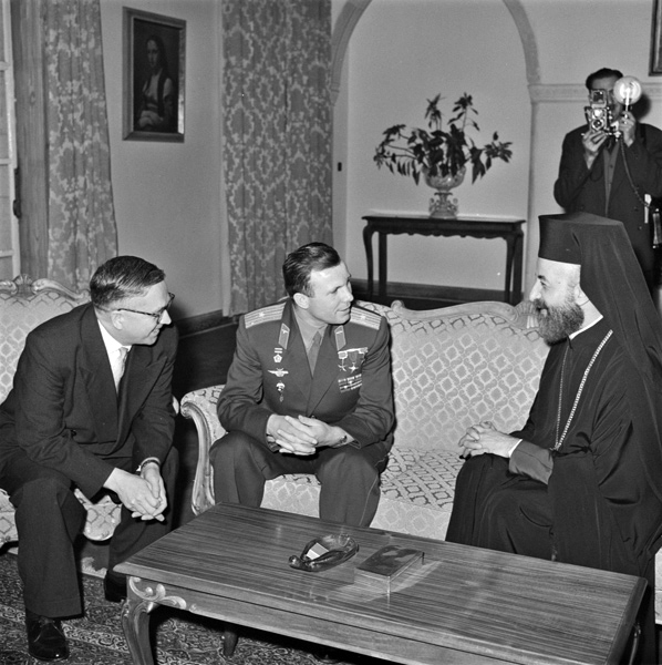 Fig. 1 : Youri GAGARINE avec le Président Makarios III. Crédit : DR.