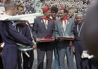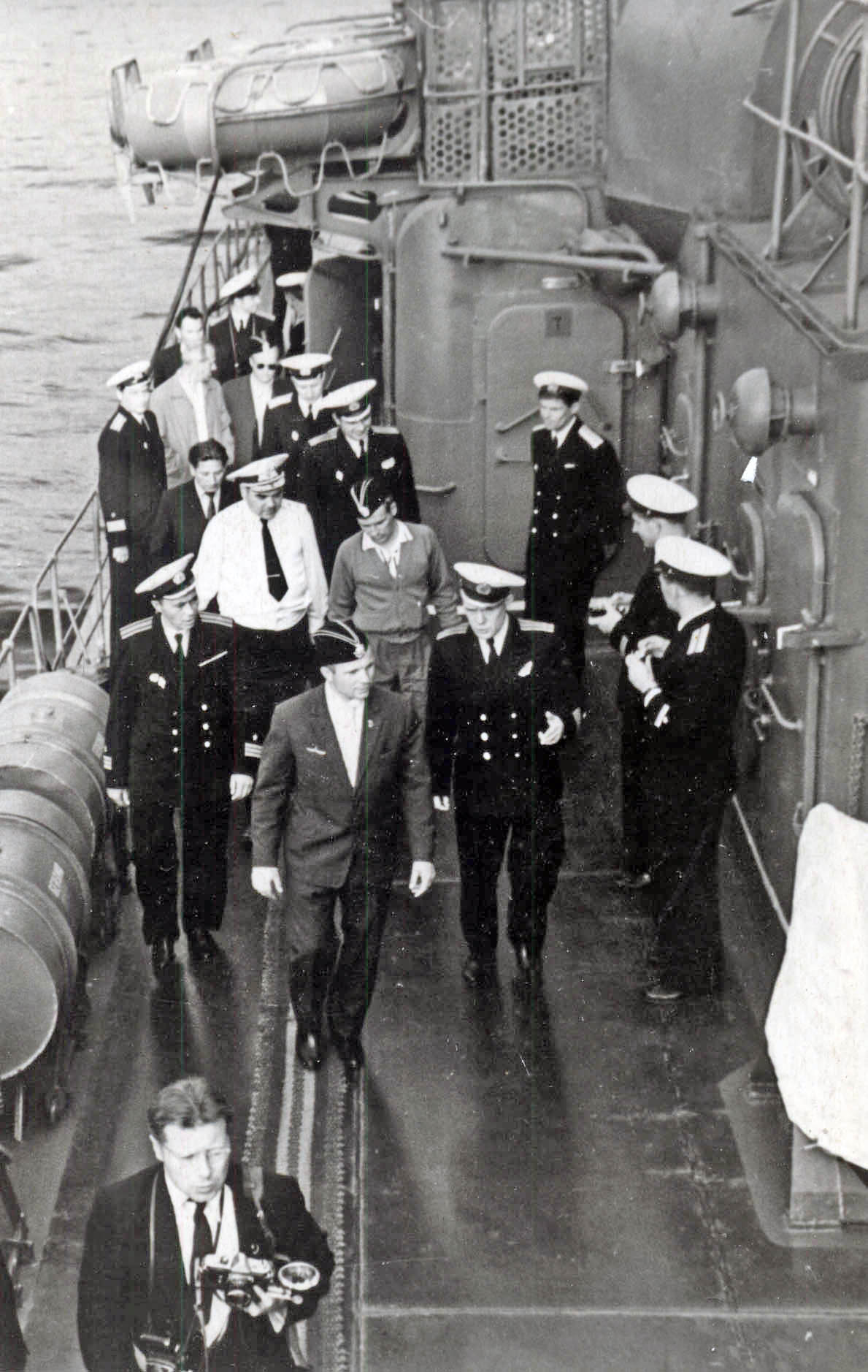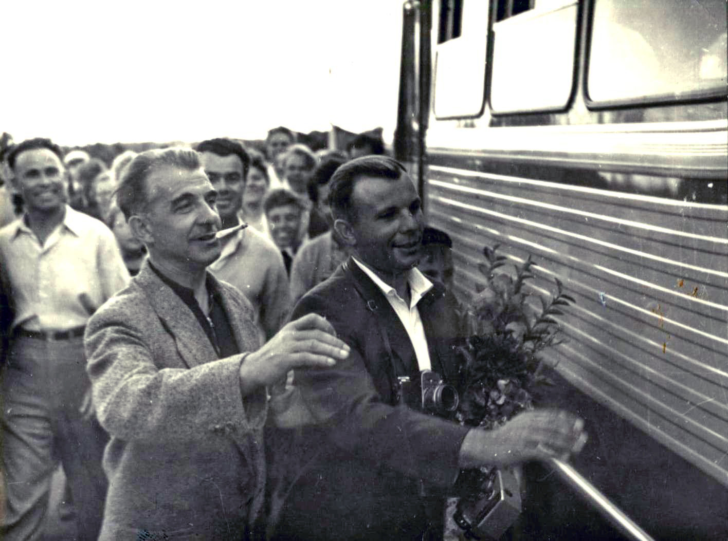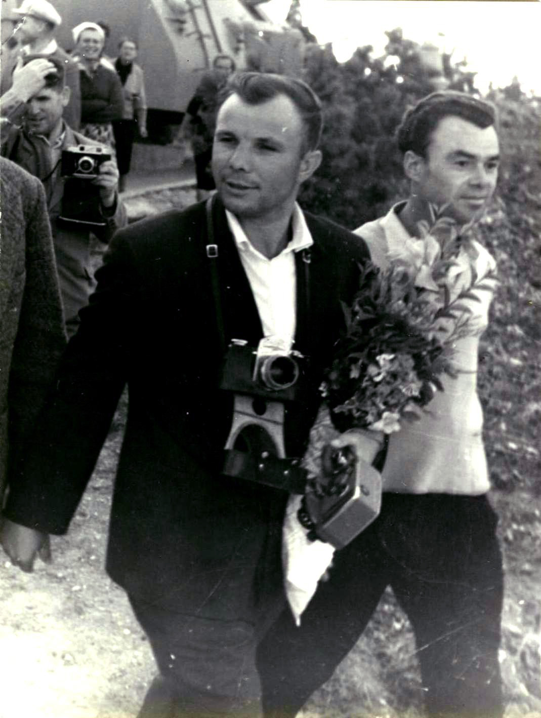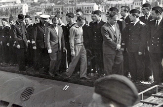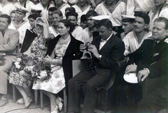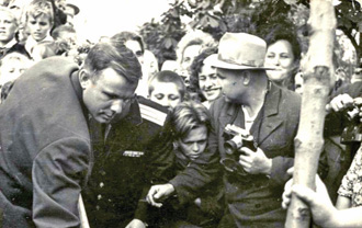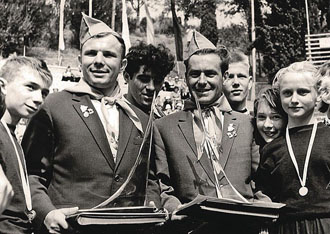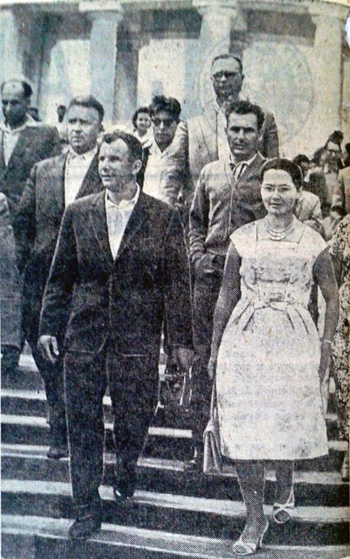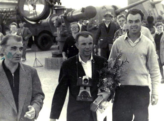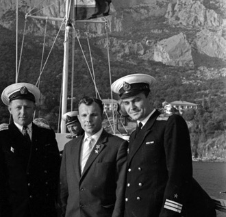 Les voyages de GAGARINE | CriméeYouri GAGARINE a réalisé un voyage en Crimée du 14 septembre au 3 octobre 1961. Il était accompagné de son épouse Valentina, du cosmonaute Hermann TITOV, du général Nikolaï KAMANINE et de son épouse Maria ainsi que des colonels AZBIÏEVITCH, ROUDNYI et ARISTOV. Ils font le voyage à bord d'un Il-14 et séjournent dans l'ancienne maison de vacances de Maksim GORKI, située à deux kilomètres du camp de vacances Foros. 1. La visite de SébastopolLe 21 septembre 1961, GAGARINE et TITOV se rendent à Sébastopol. Ils visitent la ville, notamment la Jetée du Comte (Графская пристань), ainsi que l'exposition de Sapoun-Gora sur la libération de la Crimée. Les deux cosmonautes plantent des arbres sur la colline Malakhov. Il est accueilli sur le croiseur Mikhaïl Koutouzov par l'amiral Igor KASSATONOV. Là, il reçoit le titre de citoyen d'honneur de la ville de Sébastopol. Le même jour, il s'arrête aussi sur la base de Balaklava où, avec TITOV et KAMANINE, il visite le sous-marin S-69 du Projet 644. Il réalise même une plongée de six heures dans la baie de Balaklava. A la fin de la journée, KAMANINE note que GAGARINE et TITOV sont tous les deux ivres. 2. La visite du camp ArtekLe 25 septembre 1961, Youri GAGARINE se rend au camp Artek où il rencontre les jeunes pionniers. Il mange au restaurant Yalta et visite l'usine Massandra où il goûte douze vins différents en compagnie du Premier secrétaire du Parti communiste local A.A. KOUTSIENKO et de son adjoint N.N. DEMENTIEV. Le 26 septembre 1961, KAMANINE découvre que Robert AKHMEROV, le garde du corps de TITOV, boit beaucoup, fait boire TITOV et rend visite à des prostituées. Il en parle avec GAGARINE et TITOV et leur conseille de surveiller leur comportement, et il renvoie AKHMEROV à Moscou. Bibliographie[1] KAMANINE, N., Скрытый космос, tome 1 Dernière mise à jour : 5 juin 2021 |