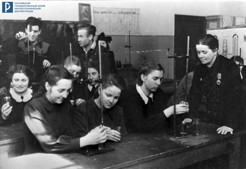 Fig. 1 : LEONOV en cours de chimie Il en sort diplômé en 1955 et intègre l'École des Pilotes de l'Aviation Militaire Tchougouïev à Kharkov. Il obtient son brevet de pilote de chasse en 1957. Il commence alors à servir dans divers régiments aériens, notamment en Allemagne de l'Est. En février 1960 il est sélectionné au sein du premier groupe de cosmonautes. Il rejoint le Centre d'Entraînement des Cosmonautes (TsPK) pour y commencer l'entraînement dans le cadre du programme Vostok. En septembre 1961 il est envoyé à l'Académie des Ingénieurs des Forces aériennes Zhoukovski. Il y suivra des cours parallèlement à son entraînement. En 1963 il est nommé au poste de second commandant de réserve pour le vol Vostok-5. Après cela, le 4 février 1964, il est transféré sur le programme Voskhod. Au mois de juillet 1964, il est nommé pilote de Voskhod-2. Ce poste n'est pas anodin : c'est à LEONOV que reviendra l'honneur d'effectuer la première sortie dans l'Espace de l'Histoire, le 18 mars 1965. En 1966 il est muté sur le programme lunaire, et est nommé commandant de son groupe de cosmonautes. A ce titre, c'est à lui que reviendra l'immense privilège d'effectuer le premier pas sur notre satellite, dans le cas où l'Union soviétique battrait les États-Unis dans la course à la Lune. Malheureusement, ce ne sera pas le cas. En 1968 il obtient son diplôme d'ingénieur de l'Académie Zhoukovski. Il travaille ensuite sur les programmes Soyouz et DOS. Son premier assignement lui confère alors le poste de commandant du deuxième équipage de la station orbitale DOS-1. Il devra donc commander l'équipage de réserve de la première mission (Soyouz-10) et l'équipage principal de la seconde (Soyouz-11). Mais son collègue Valeri KOUBASSOV se blesse et tout l'équipage est rétrogradé en troisième position. LEONOV sera donc commandant de réserve de Soyouz-11 et commandant principal de Soyouz-12. On apprendra rétrospectivement que LEONOV a ainsi échappé à la mort, car s'il avait volé sur Soyouz-11, il aurait péri lors de la rentrée. En novembre 1972 il est nommé commandant du premier équipage à destination de la deuxième station spatiale (DOS-2). Mais cette station est perdue au lancement. Son équipage est alors transféré sur la station suivante (DOS-3) mais, encore une fois, la station est perdue avant d'avoir pu rentrer en service opérationnel. Les équipages DOS sont alors dissous et leurs membres sont réaffectés. LEONOV, lui, se voit confier le commandement de Soyouz-19, le vaisseau qui doit s'amarrer avec un Apollo américain (programme EPAS). Il décolle en juillet 1975 et passe près d'une semaine en orbite. LEONOV devient ensuite commandant en second du TsPK et commandant des cosmonautes. Il quitte le corps des cosmonautes en janvier 1982 et devient Premier Commandant en Second du TsPK, et ce jusqu'au 12 septembre 1991. Il quitte le service actif des Forces aériennes en 1992 et entre au Conseil d'Administration de la banque Alfa-Bank. Il en deviendra par la suite le vice-président. Alekseï LEONOV est deux fois Héros de l'Union soviétique (23 mars 1965 et 22 juillet 1975) et pilote-cosmonaute d'Union soviétique.