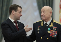 Fig. 2 : Le Président Dmitri MEDVEDEV remet à LEONOV
