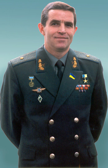 Leonid KADENIOUK termine l'école de Klichkovtsy en 1967 avec la médaille d'argent, et il entre alors à l'École Supérieure des Pilotes de l'Aviation Militaire de Tchernigov, dont il sort diplômé en novembre 1971 avec le grade de lieutenant. Il sert alors en tant qu'instructeur à l'école de Tchernigov. Il est promu au grade de capitaine le 23 février 1976. Il est sélectionné comme cosmonaute des Forces aériennes soviétiques le 23 août 1976. Comme il est appelé à voler sur la navette spatiale Bourane, dont le développement a commencé quelques mois plus tôt, il suit une formation de pilote d'essais au 267ème Centre d'Essais Aéronautiques d'Aktioubé de septembre 1976 à juillet 1977. A l'issue, en octobre 1977, il commence sa Formation Spatiale Générale (OKP) au Centre d'Entraînement des Cosmonautes (TsPK). Il la termine avec succès en septembre 1978, et obtient la qualification de cosmonaute d'essais. Le 18 août 1982 il est promu lieutenant-colonel. Mais il est exclu du détachement des cosmonautes le 22 mars 1983 suite à son divorce. Il devient alors chef d'équipe au centre aéronautique de Lipetsk puis, à partir de juin 1984, pilote d'essais au Centre National d'Essais en Vol Tchkalov (GKNII) d'Aktioubé. A côté de cela, à partir de septembre 1985 il suit des cours du soir à la filiale d'Aktioubé de l'Institut d'Aviation de Moscou (MAI), et il obtient son diplôme d'ingénieur en mécanique en 1989. Entre temps, le 25 octobre 1986, il avait été élevé au grade de colonel. Le 25 octobre 1988 il redevient cosmonaute, cette fois dans le détachement du GKNII. Jusqu'en juillet 1990 il bénéficie d'un entraînement individuel sur la navette Bourane, puis il est formé sur le vaisseau Soyouz dans le but de servir de sauveteur au cas où un équipage de la station Mir aurait besoin d'un vaisseau en urgence. Le 15 février 1996, il fait le choix de prendre la nationalité ukrainienne, et il est donc exclu des Forces armées russes et du détachement de cosmonautes. Cette année là, l'Agence Spatiale Ukrainienne (NKAU) recrute un cosmonaute pour voler sur la navette spatiale américaine dans le cadre d'un accord bilatéral, et le choix se porte sur KADENIOUK. En décembre 1996 il part s'entraîner aux États-Unis, et il décolle à bord de la navette Columbia STS-87 le 19 novembre 1997. Il passe seize jours sur orbite dans le cadre de la mission USMP-4, qui met notamment en œuvre l'instrument MEPHISTO, et devient le premier cosmonaute de l'Ukraine indépendante. A son retour il est nommé Héros de l'Ukraine par le Président Leonid KOUTCHMA. En janvier 1998 il est promu major-général et il prend le commandement d'une Direction des Forces de défense aériennes de l'armée ukrainienne. En juillet 1999, il devient conseiller du Président KOUTCHMA sur les questions aérospatiales.