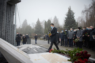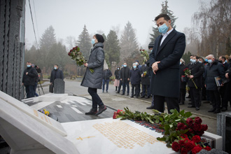 Fig. 2 : Une bouteille de vodka rend hommage à Leonid KADENIOUK ! En 2002 il est élu député à la Rada, l'assemblée nationale ukrainienne. Il se représente en 2006 et en 2012, mais il n'est pas réélu. Il décède d'une crise cardiaque lors d'une promenade dans le parc Tsarskoïe Selo de Kiev le 31 janvier 2018. Il est enterré au cimetière Baïkovo de Kiev.