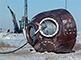 Pas de tir n°6, cosmodrome de Baïkonour, 14 décembre 1966 : Le SA après son atterrissage, près du pas de tir détruit