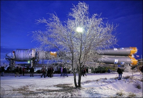 Soyouz-2 est emmené jusqu'au pas de tir et y
