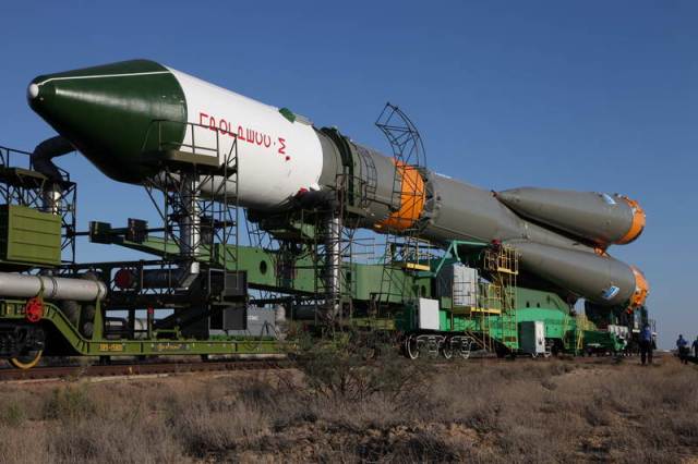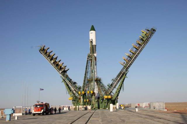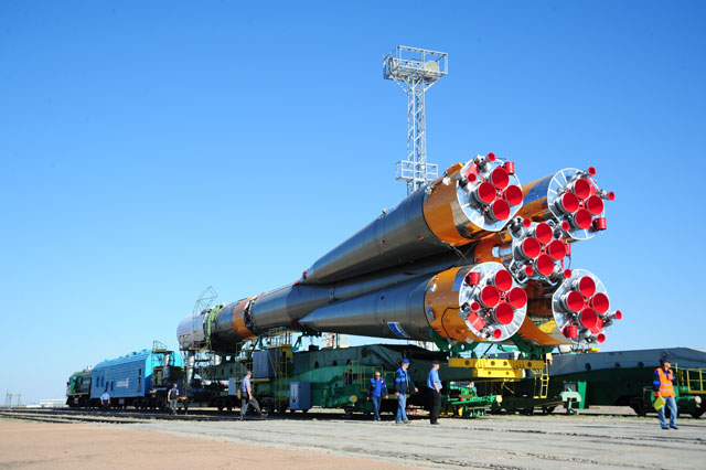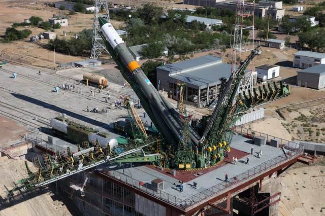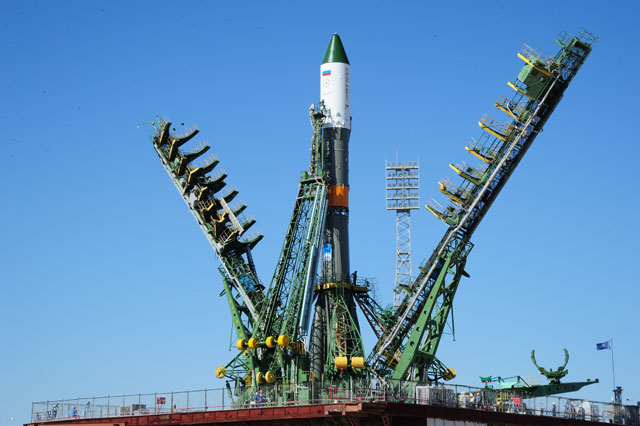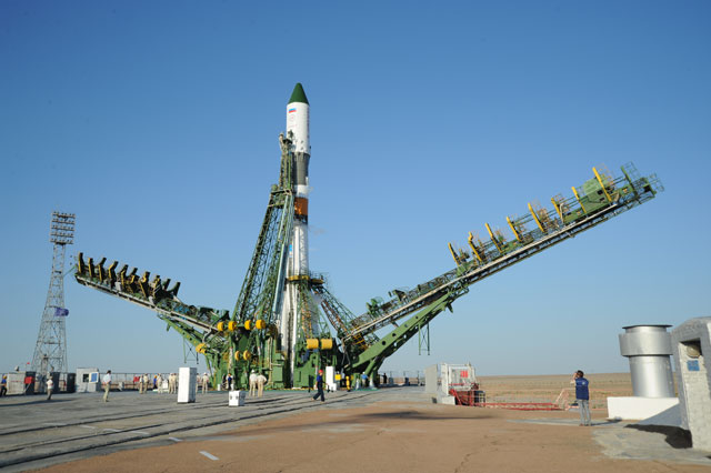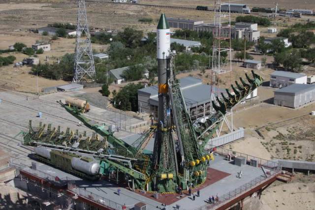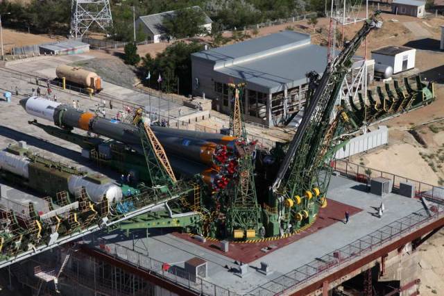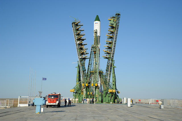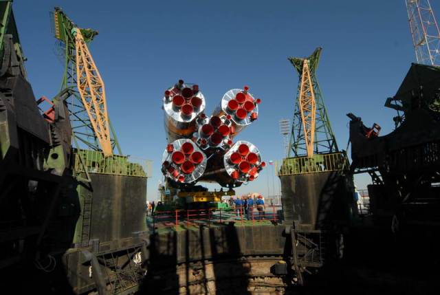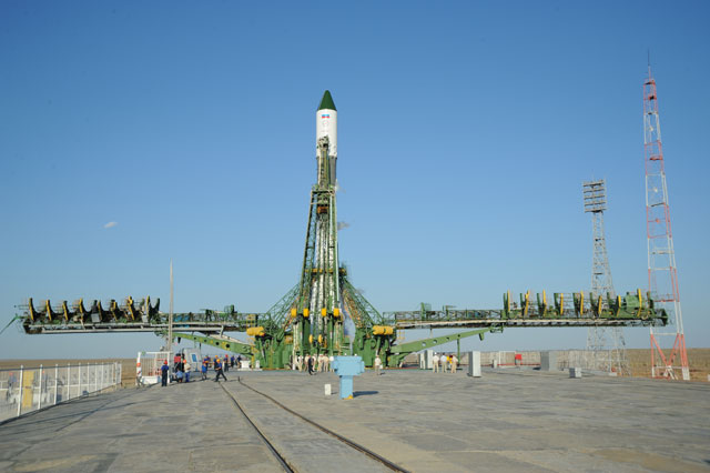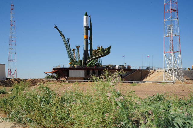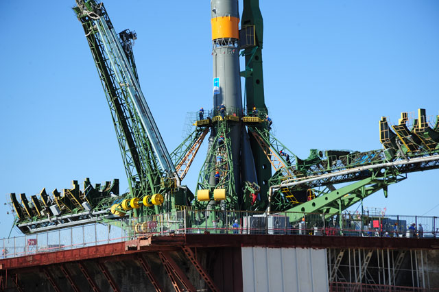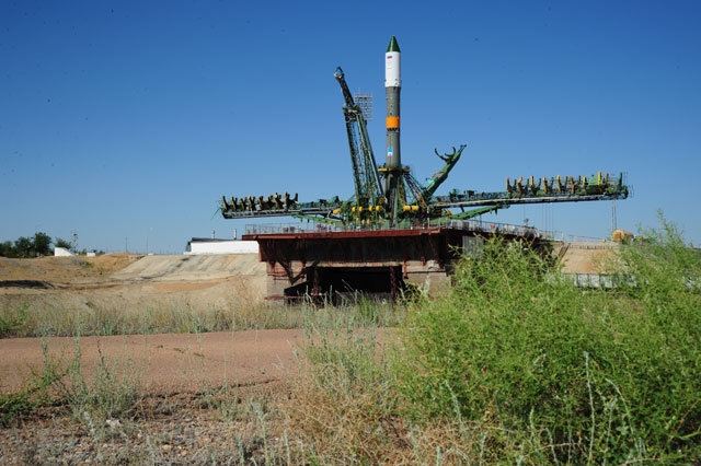 Soyouz-U est érigé sur le pas de tir