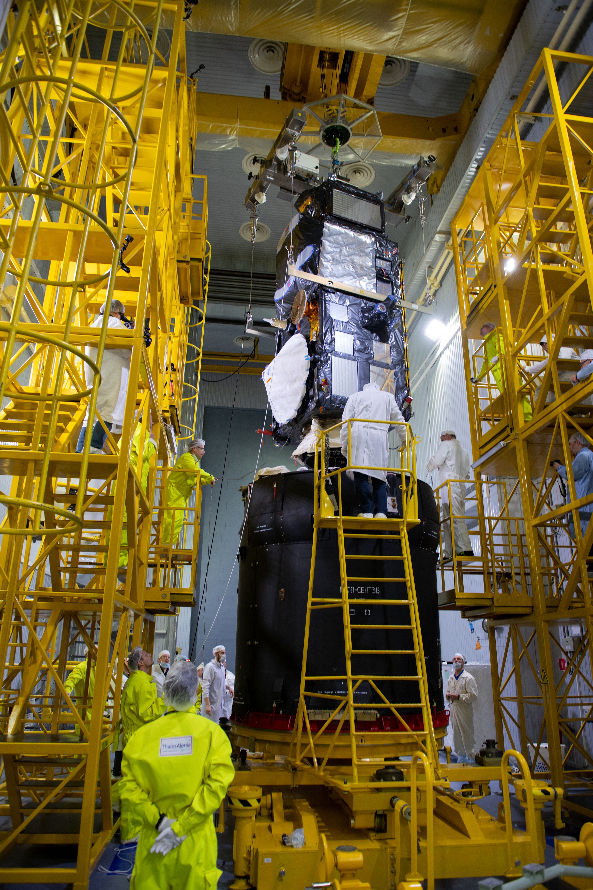 Pose de Sentinel-3B sur l'adaptateur