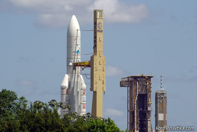 Ariane | Participation russe à Ariane 5Cette section a uniquement vocation à décrire la participation de la Russie et de l'Ukraine au programme Ariane 5. Pour des informations détaillées sur le lanceur européen, on pourra visiter le site de référence sur le sujet, Capcomespace. 1. Essais de récupérationAu cours de la première moitié des années 1990, l'ESA a désigné l'entreprise néerlandaise Fokker Space (maintenant Dutch Space) comme sous-traitant pour le développement et la production du système de récupération des Étages d'Accélération à Poudre (EAP) d'Ariane 5. Fokker Space a à son tour délégué cette tâche à l'Institut de Recherches Scientifiques sur la Construction des Parachutes (NII Parachioutostroïenie) lors de la signature d'un contrat de deux ans, le 29 juin 1993. Au printemps 1995, un avion de type Iliouchine Il-76 du NII Parachioutostroïenie a décollé de l'aérodrome de Kirzhatch, dans la Région de Vladimir, et a atteint l'altitude de 4500m. Il a alors largué une masse de 36 tonnes, simulant un EAP. Trois parachutes de stabilisation se sont ouverts, puis ce fût au tour du parachute principal de 1800m². Une fois que le bloc a atteint sa vitesse maximale, 25 tonnes de gravier qu'il transportait en guise de lest furent larguées, et le reste atterrit en douceur. Des analyses ont par la suite été conduites afin de mieux connaître le comportement du système de récupération. 2. Motorisation de l'ESC-A2.1. RD-861KDepuis 2005, la principale version d'Ariane 5 en service est la version ECA (Évolution Cryotechnique Type A), qui utilise l'Étage Supérieur Cryotechnique Type A (ESC-A). Celui-ci est propulsé par un moteur HM7B de Snecma, repris du troisième étage d'Ariane 4.