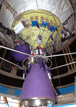 Fig. 2.1 : Le moteur HM7B de l'étage ESC-A dans le BAF, 30 octobre 2006 (V174). Mais dans les années 1990, la France avait engagé des négociations avec le KB Youzhnoïe de Dniepropetrovsk, en Ukraine, pour acheter sur étagère le moteur RD-861K. Dérivé du RD-861 (11D25) qui équipait le troisième étage du lanceur Tsiklone-3, il fonctionne avec des ergols stockables.