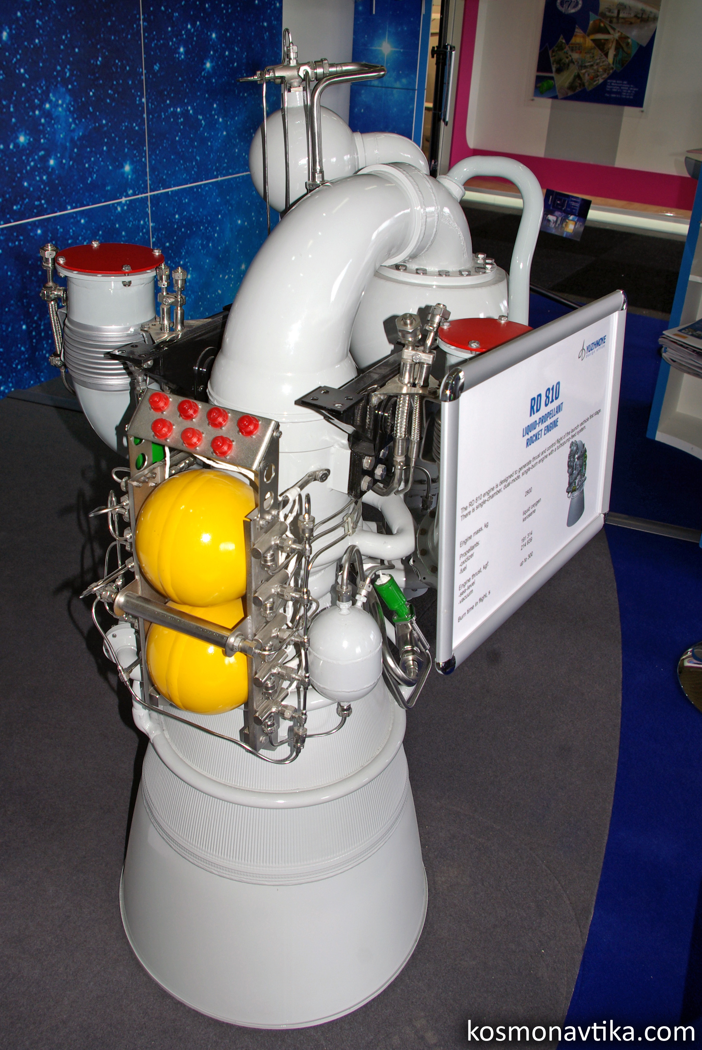 Finalement, bien que Youzhnoïe propose un prix unitaire inférieur à 400.000$, la France préfère réutiliser le HM7B cryotechnique d'Ariane 4. En revanche, le RD-861K sera utilisé dans le projet de lanceur Tsiklone-4, réalisé en coopération avec le Brésil. 2.2. S5.76Au cours des années 1997-1998, la SEP (Société Européenne de Propulsion) a demandé au KB KhimMach de Koroliov de proposer un projet de moteur pour l'ESC-A. Le KB KhimMach a mis sur la table le moteur S5.76, dérivé du D76 développé en 1970 pour les missiles balistiques mer-sol (SLBM) du KB Makeïev. Le D76 n'avait finalement jamais été construit, mais les études avaient bien avancé. Le S5.76 n'est utilisable qu'une seule fois. Il est construit autour d'une turbopompe et d'une unique chambre de combustion. Une turbopompe a été construite, mais le Gouvernement russe a trop tardé à autoriser le KB KhimMach à travailler avec la SEP, et le développement du S5.76 a finalement été abandonné. 3. Remplacement des EAPLe KB Youzhnoïe de Dniepropetrovsk a présenté au 62ème Congrès International d'Astronautique, qui s'est tenu au Cap du 3 au 7 octobre 2011, une étude réalisée sur fonds propres visant à remplacer les Étages d'Accélération à Poudre (EAP) d'Ariane 5 ECA par des étages ukrainiens.
