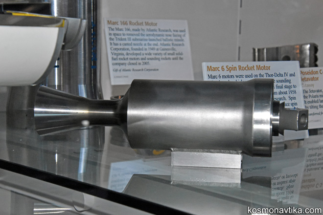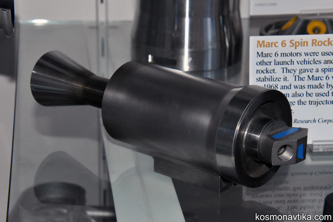 Delta | Où les voir ?Un moteur Marc 6 de l'entreprise Atlantis Research est exposé au Centre Steven F. Udvar-Hazy de Chantilly, en Virginie, aux États-Unis. Il était utilisé sur les lanceurs Thor Delta et sur les fusées-sondes Astrobee pour mettre leurs étages supérieurs en rotation. Dernière mise à jour : 10 juillet 2023 |