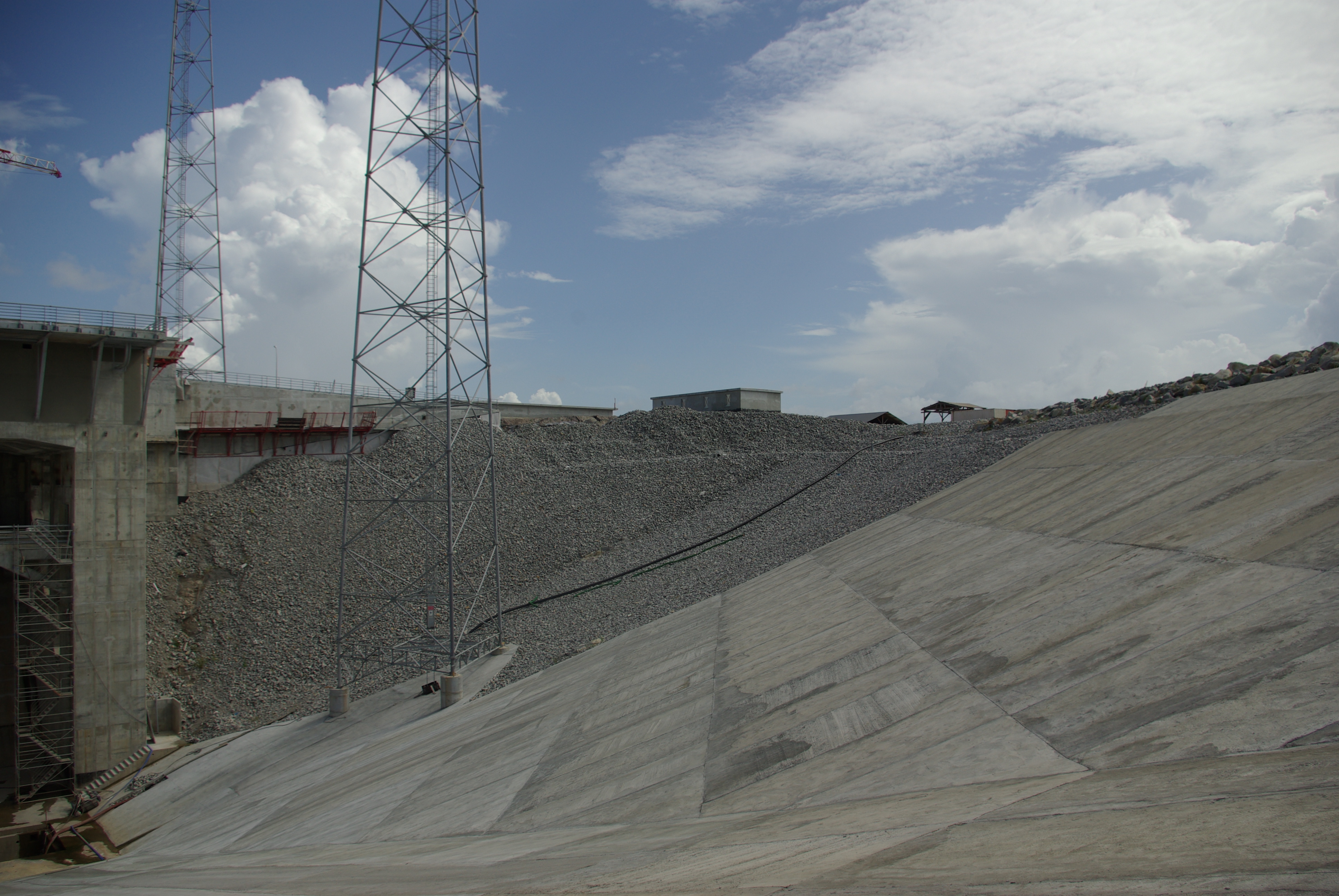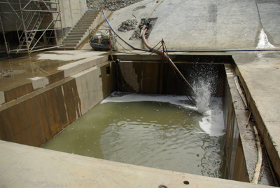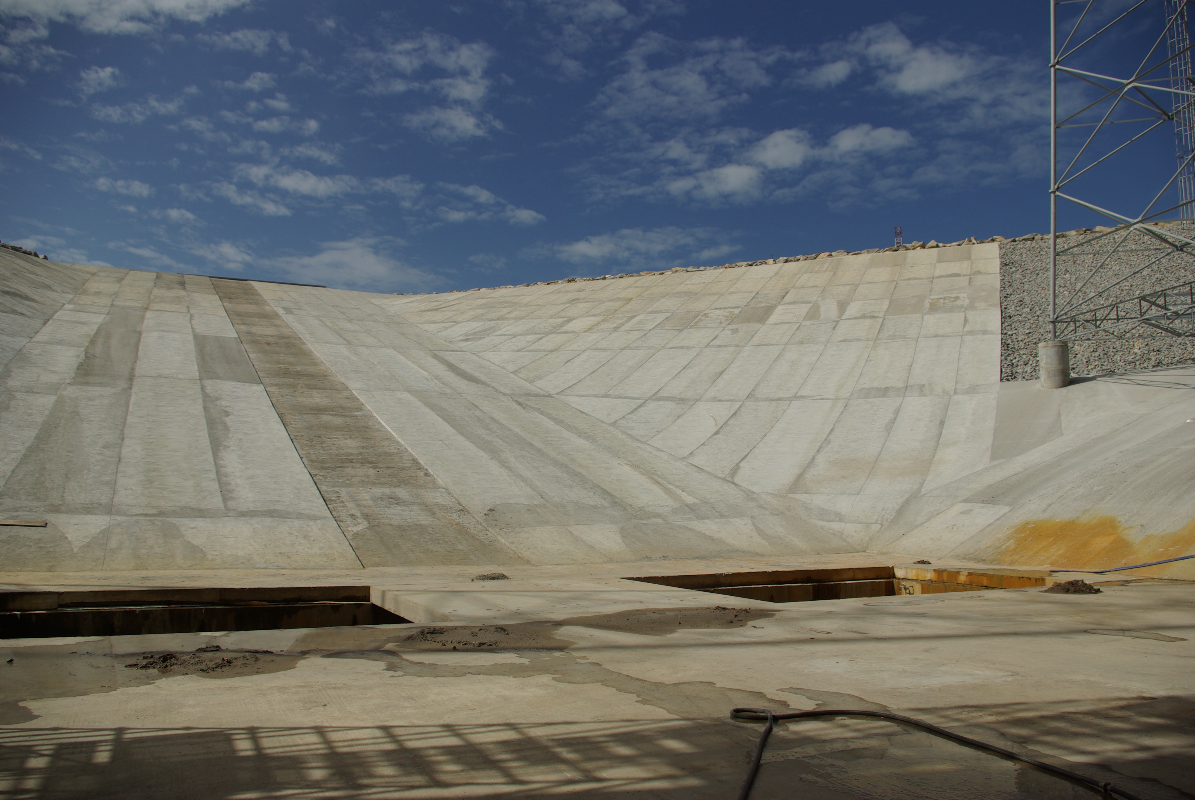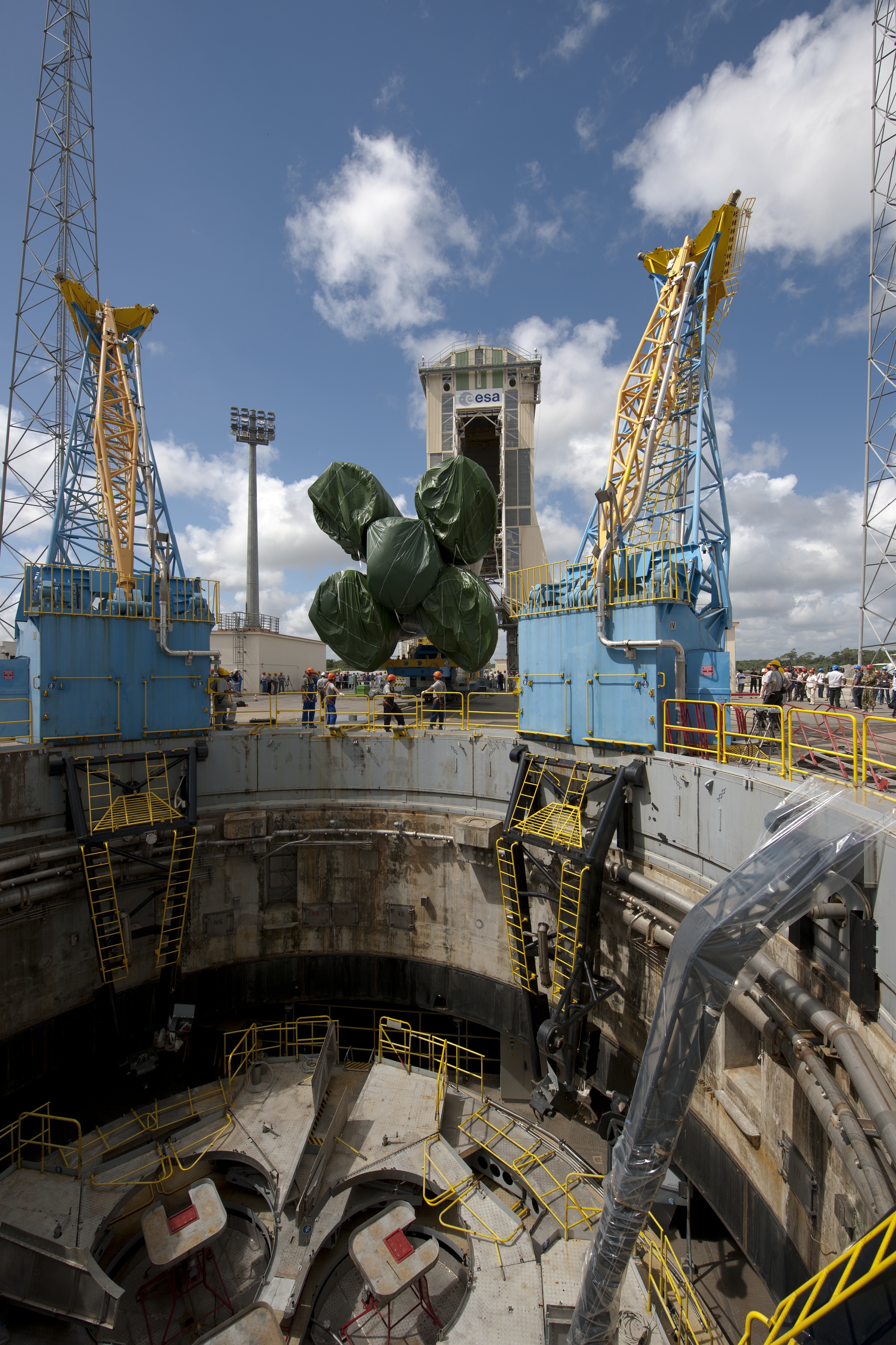 Centre Spatial Guyanais. En raison des très fortes précipitations présentes en Guyane, le carneau a été équipé d'un système de collecte et de pompage des eaux de pluies, afin d'éviter que le niveau ne monte.