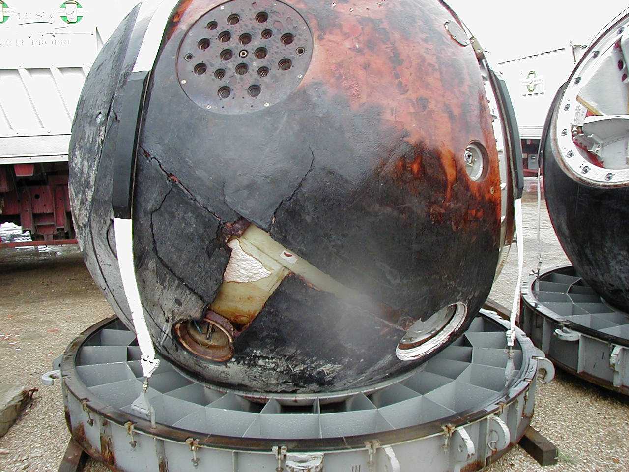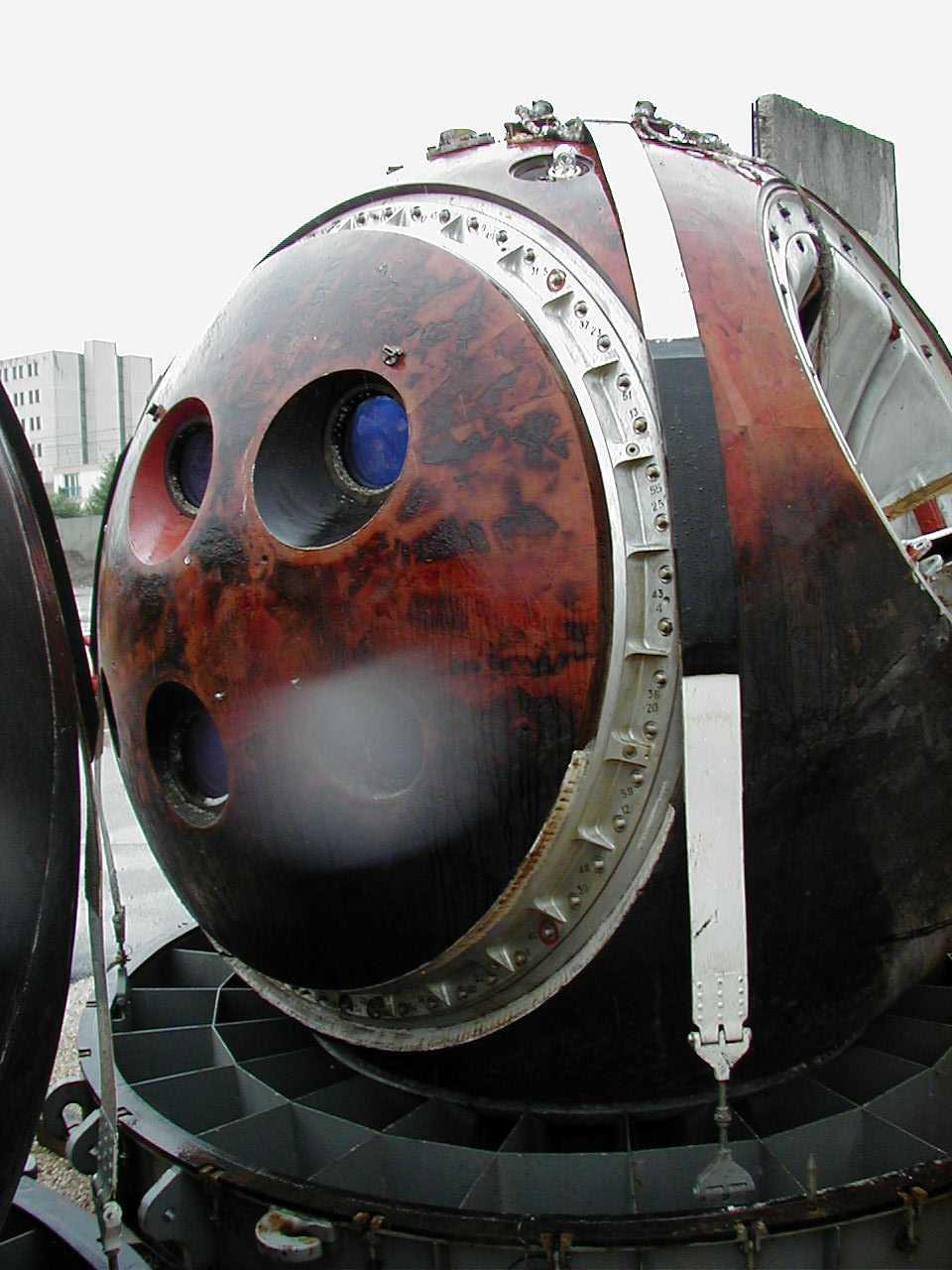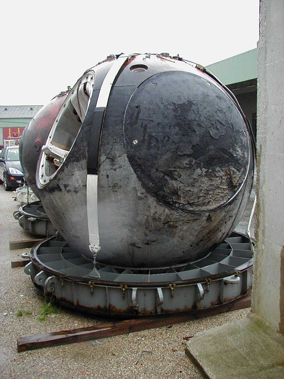 Ressource | Où les voir ?Le satellite Ressource-F (14F43 n°78023153) a été lancé du cosmodrome de Plesetsk le 23 juillet 1991, et son Compartiment de Descente (SA) est revenu sur Terre le 8 août 1991. Il est maintenant exposé à la Space Expo du centre technique de l'ESA (ESTEC), à Noordwijk, aux Pays-Bas, après que ce dernier l'ait rachetée en 2001 à la société AGMS, à Viry-Châtillon. Merci à Pierre-François MOURIAUX, de l'association Histoires d'Espace, pour son aide dans la reconstitution de l'histoire de cette capsule. |