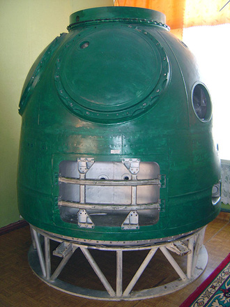 7K-L1 | Où les voir ?Un Compartiment de Descente (SA) de vaisseau 7K-L1 (11F91 n°2У) est conservé au Palais des Pionniers de la ville de Baïkonour, au Kazakhstan. Il est estampillé du numéro « 2У », ce qui peut laisser penser qu'il s'agit d'un vaisseau d'entraînement (У comme Учебный). Mis à part cet indice, son origine est totalement inconnue. |