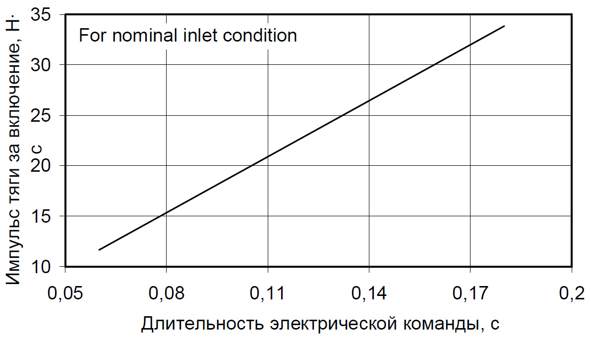 Fig. 3.3.4 : Caractéristiques du moteur 17D16. En cas de besoin, le 17D16 peut fonctionner sans carburant, en éjectant l'oxygène gazeux sous pression par la tuyère pour créer une poussée de 45N avec une impulsion spécifique de 700m/s [3].