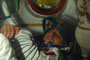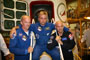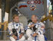 Les cosmonautes montent dans le Soyouz, en scaphandre cette fois