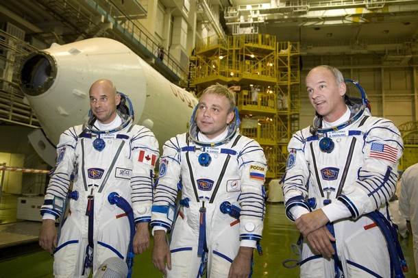 Les cosmonautes montent dans le Soyouz TMA-16