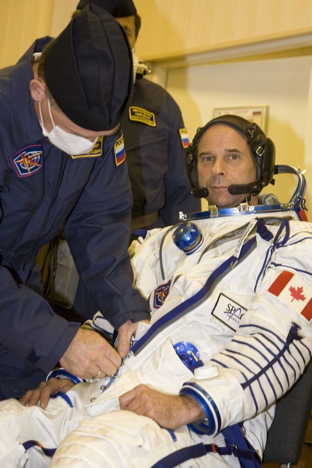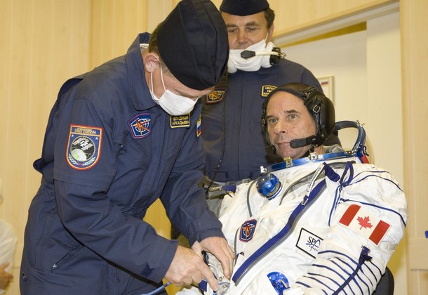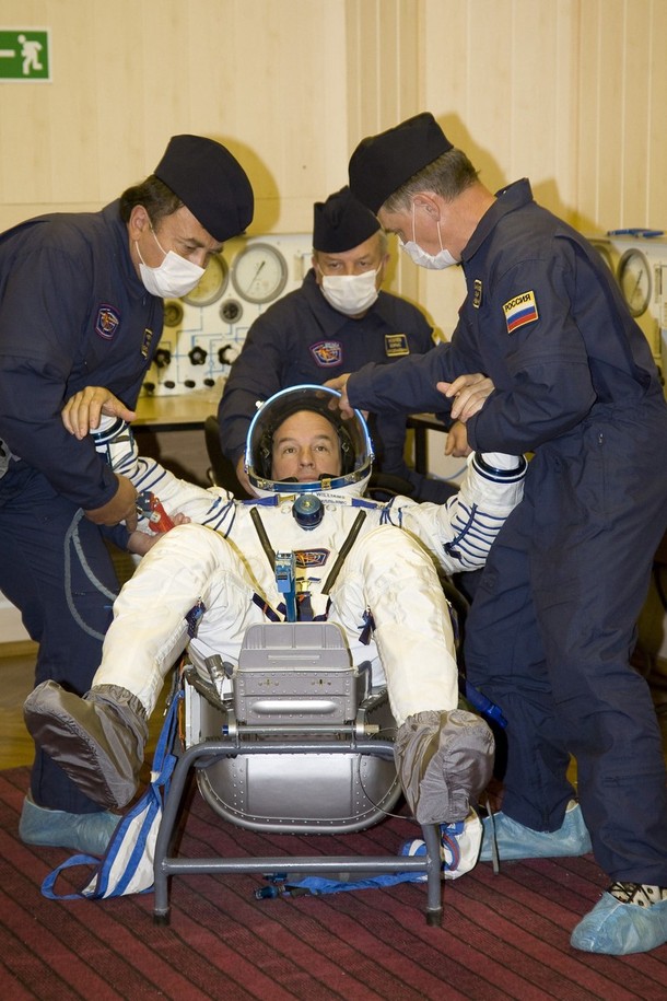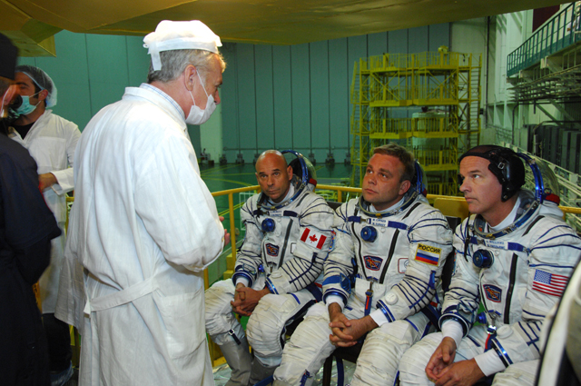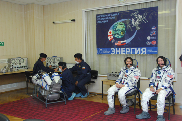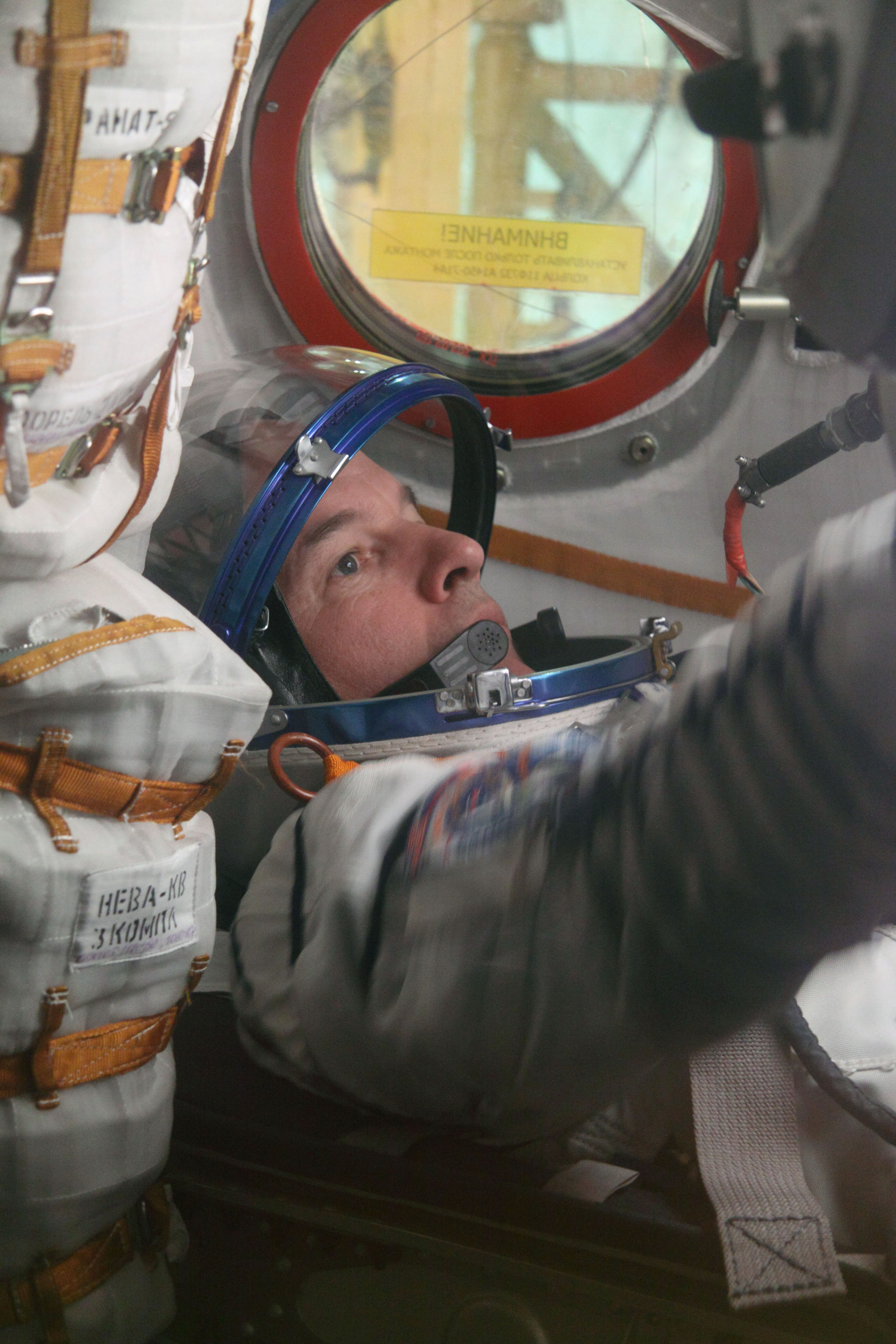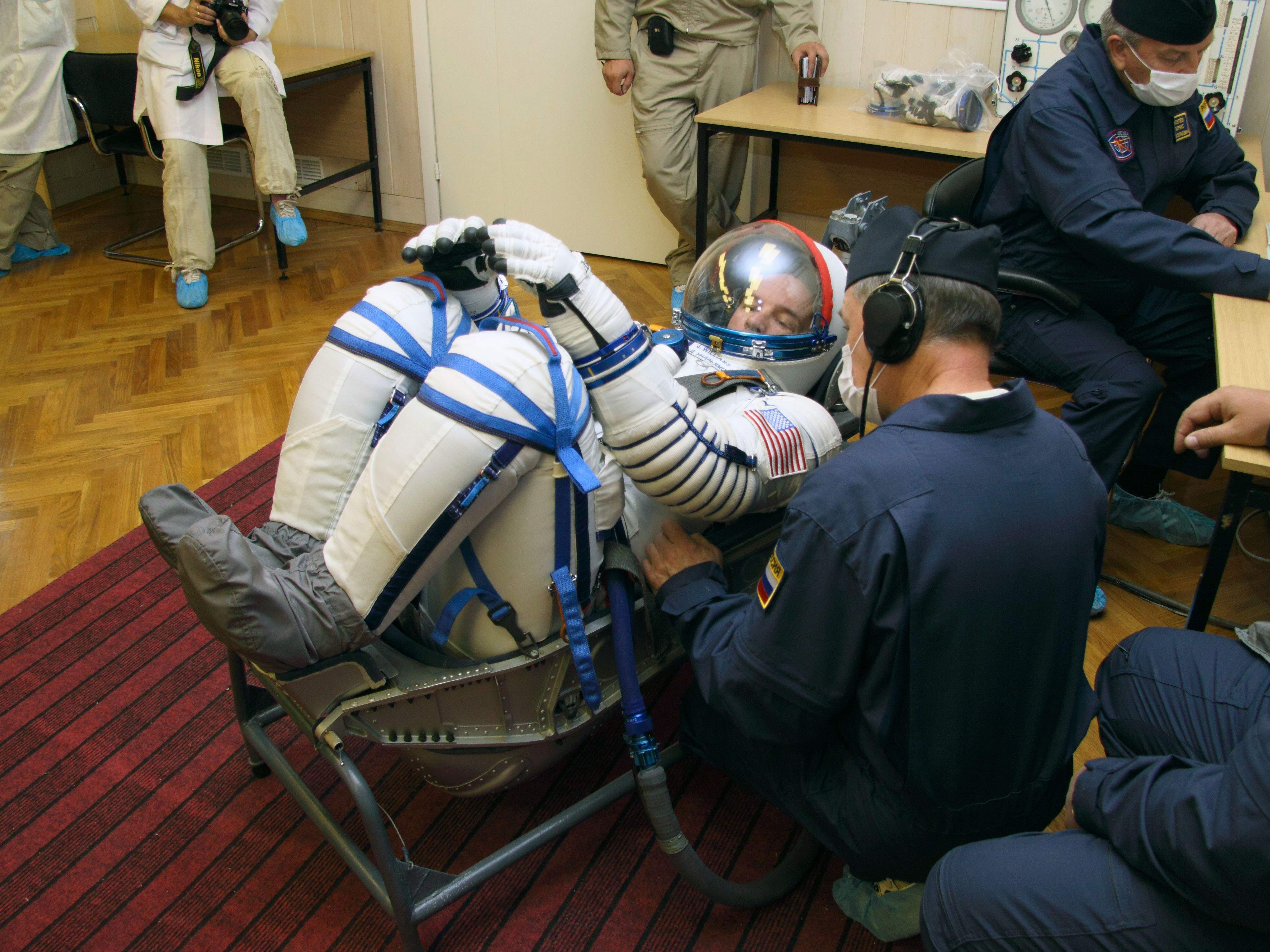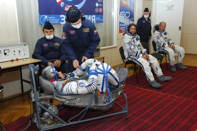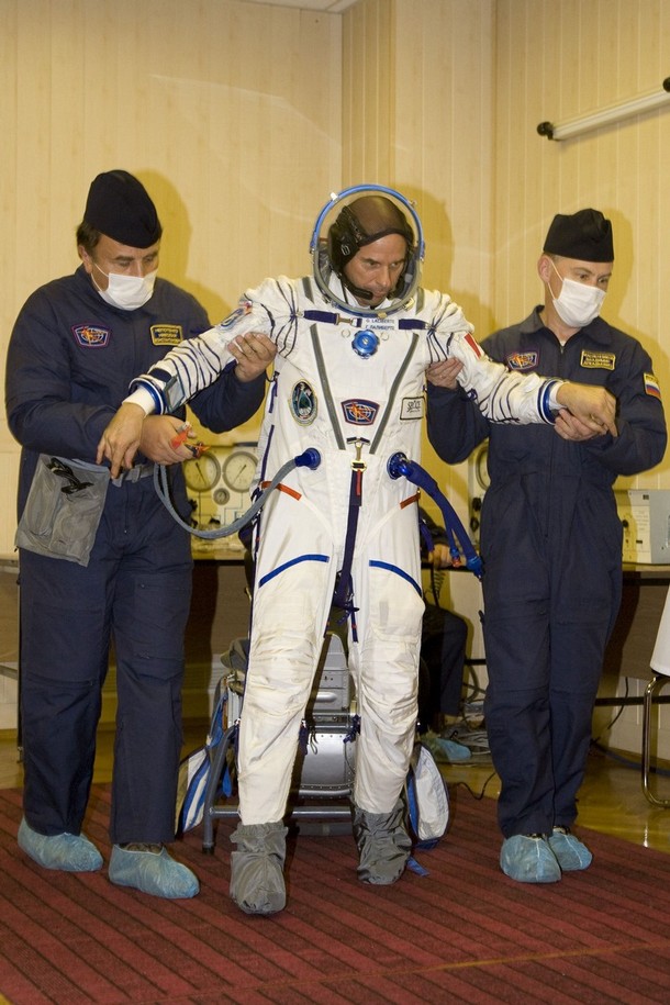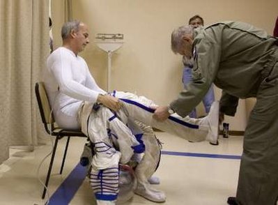 Les cosmonautes enfilent leur scaphandre
