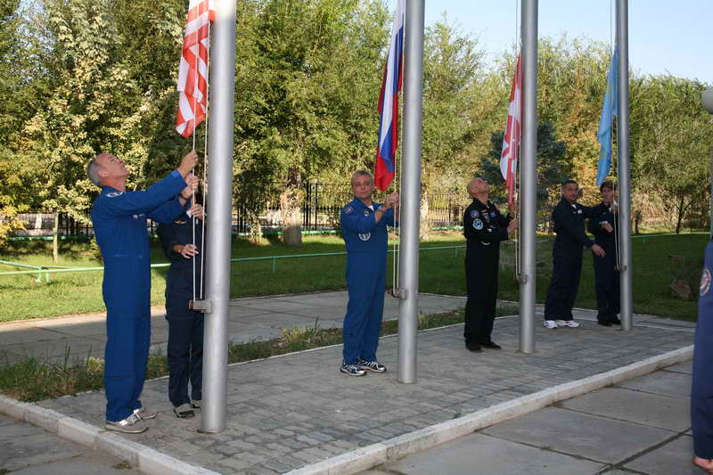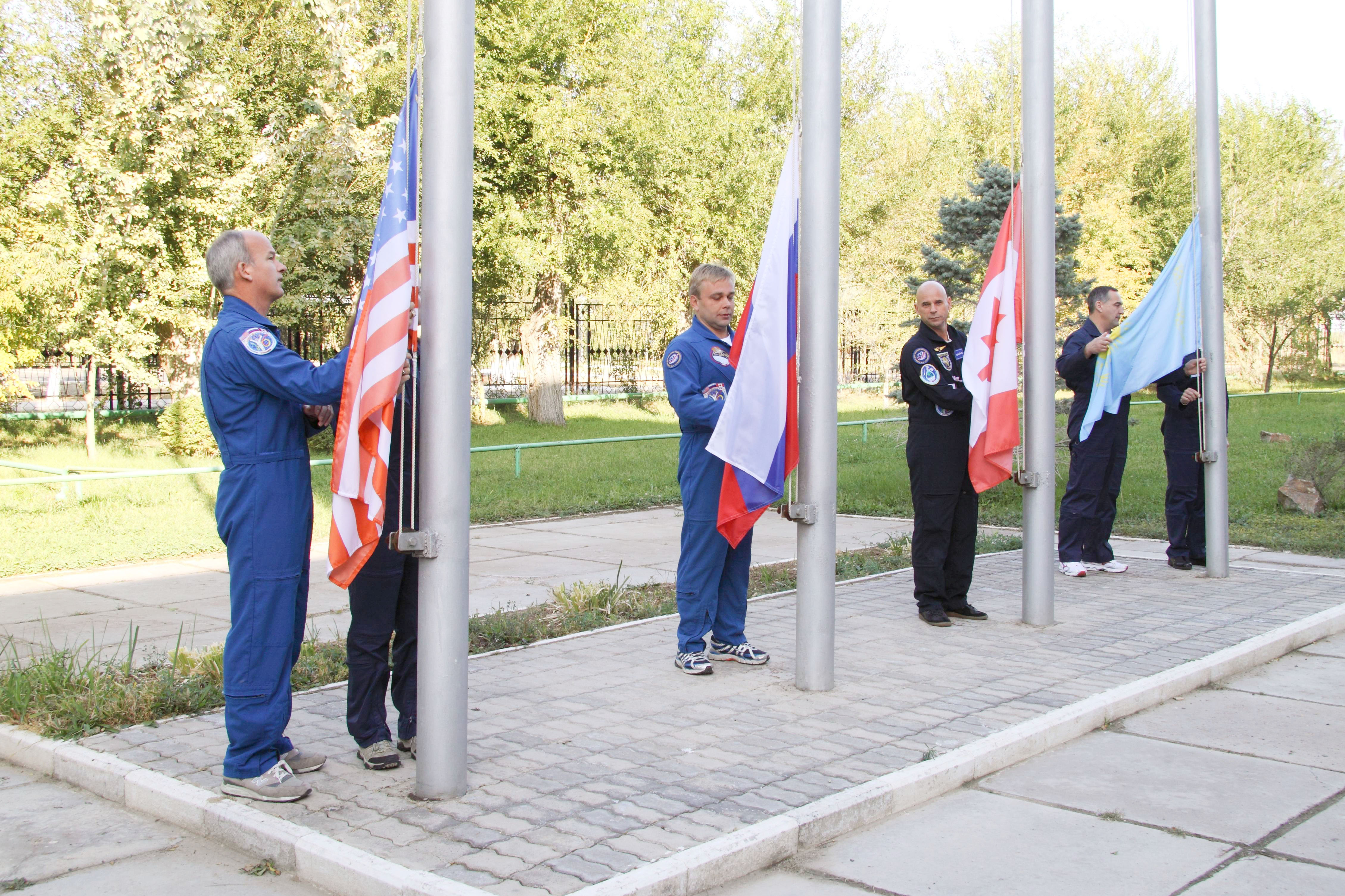 Les cosmonautes hissent les couleurs de leur pays respectif