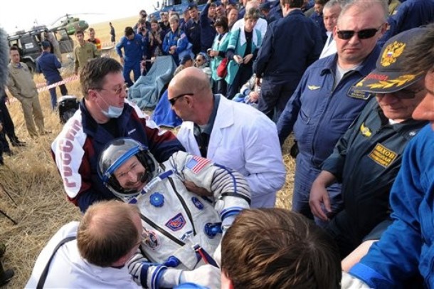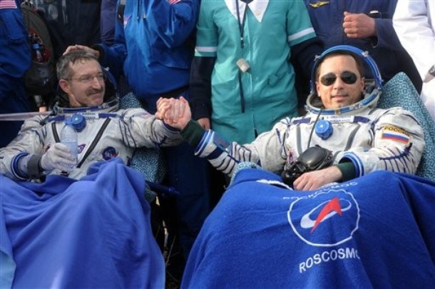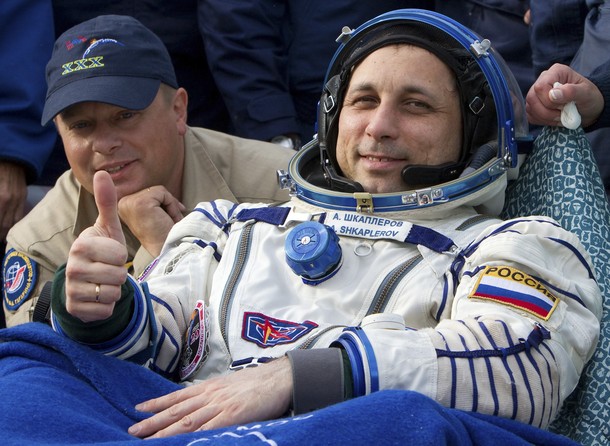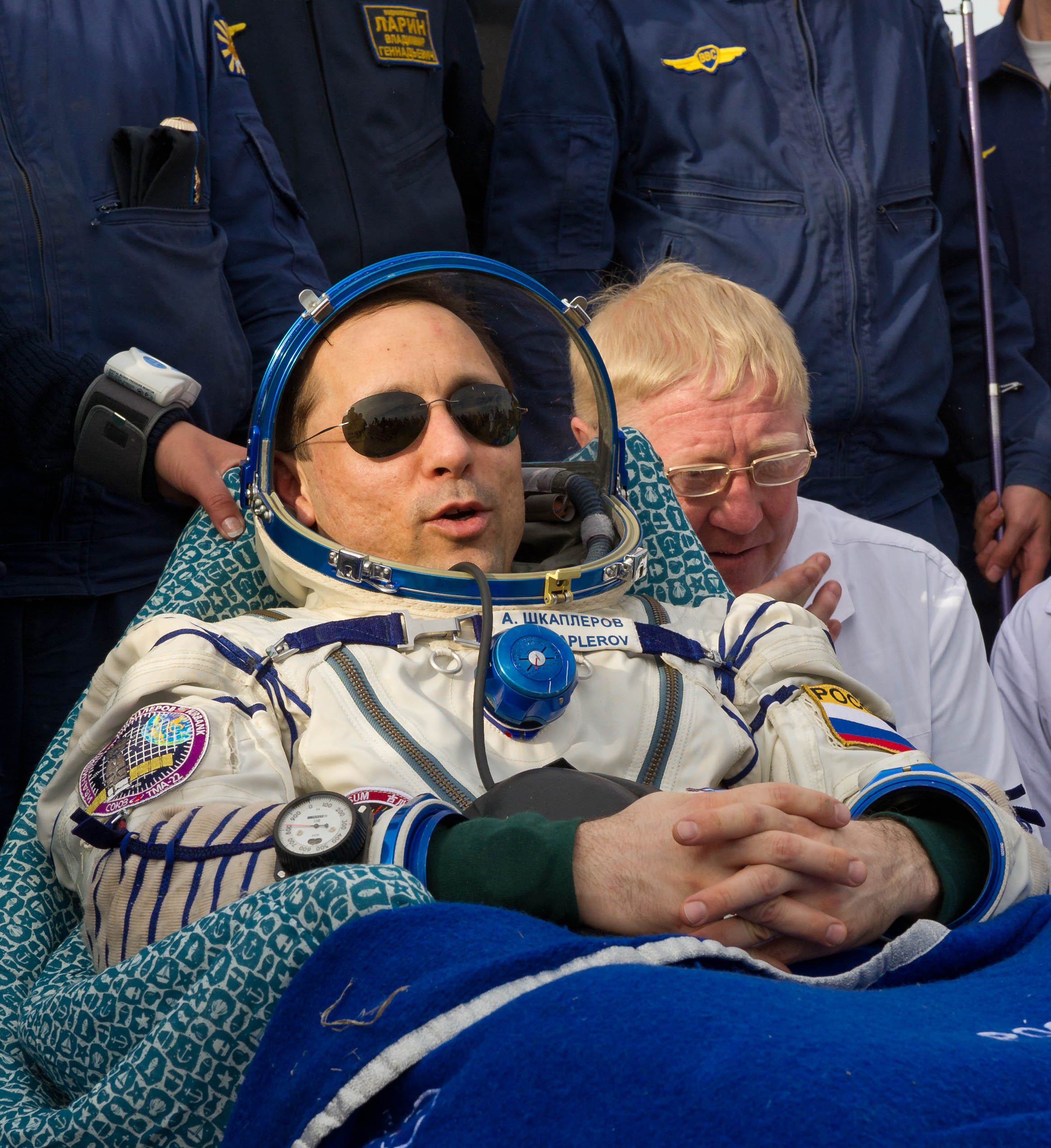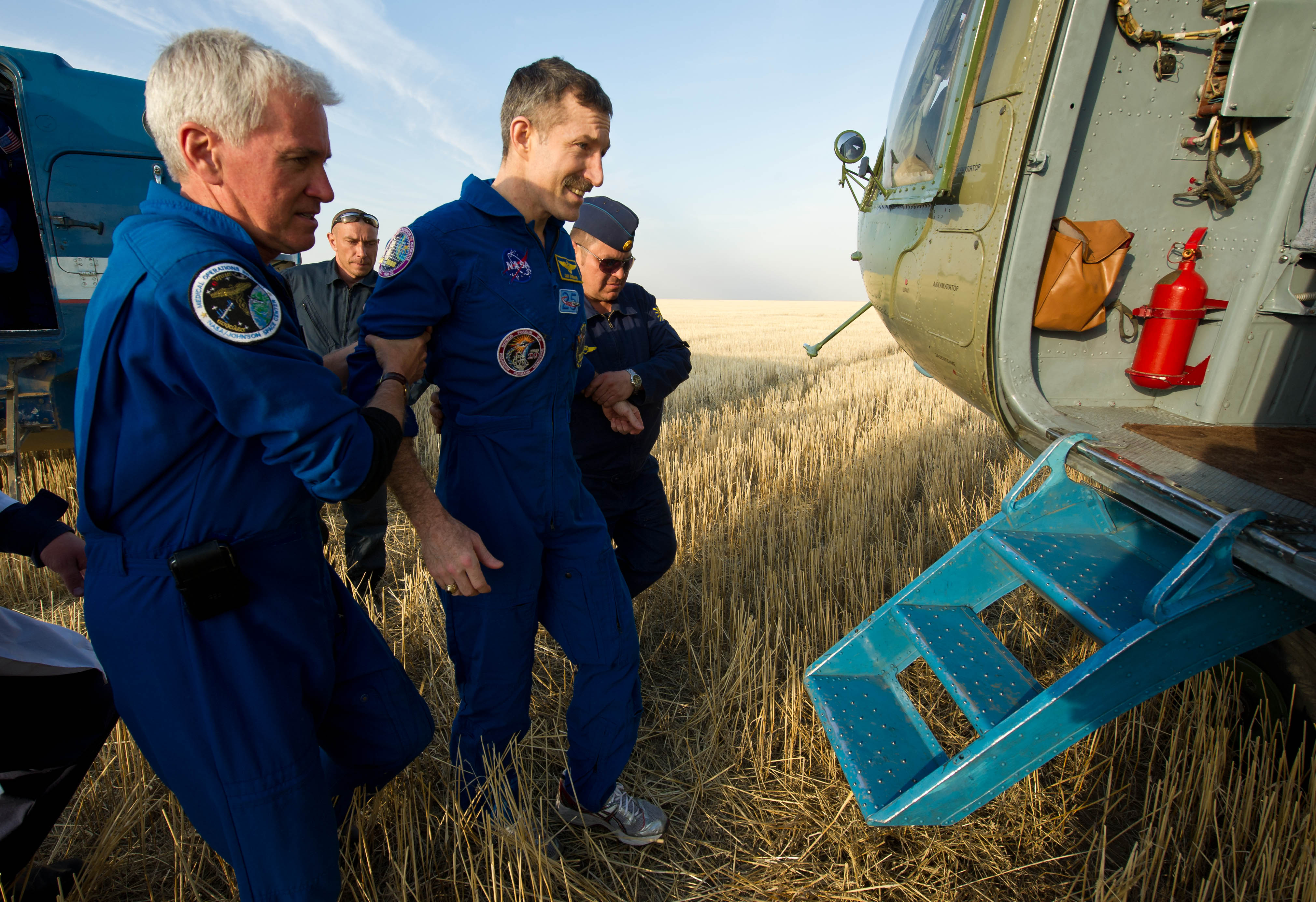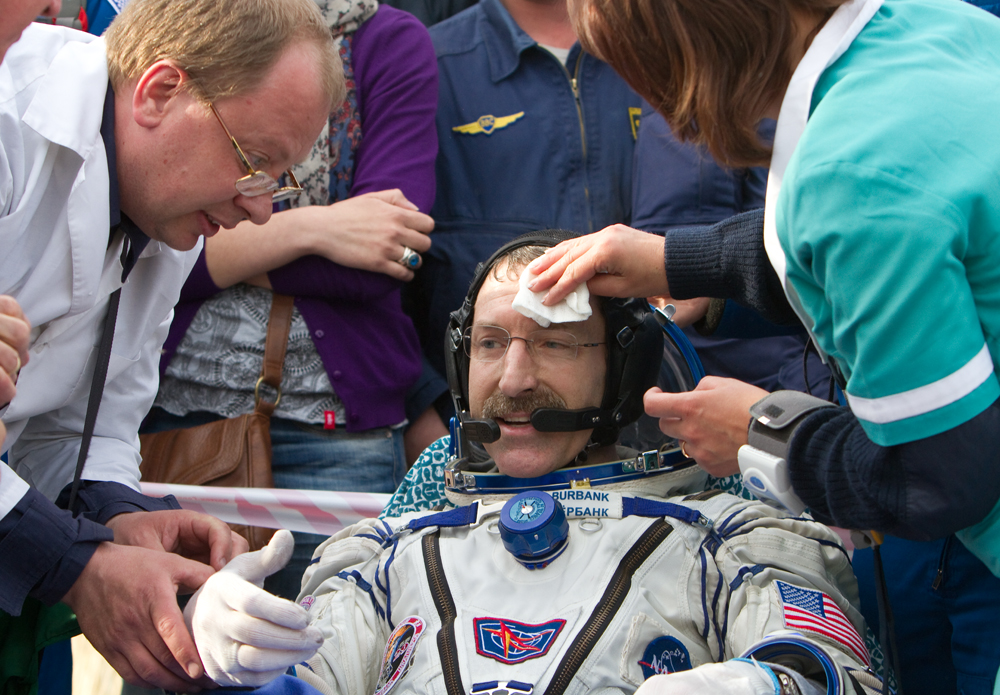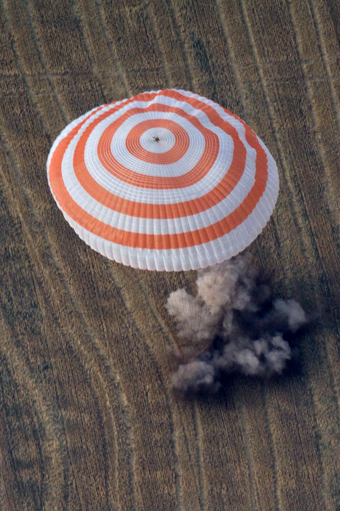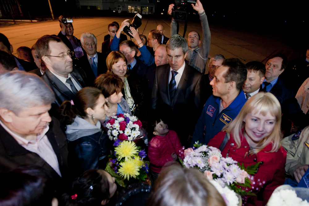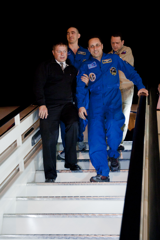 MKS-30 | Soyouz TMA-22A bord du SA, 19 avril 2012 : A bord du SA, 23 avril 2012 : Les hélicoptères prêts à décoller, 27 avril 2012 : Soyouz TMA-22 se sépare de Poïsk, 27 avril 2012 : Atterrissage de Soyouz TMA-22, 27 avril 2012 : Les équipes de récupération ouvrent l'écoutille : Les trois cosmonautes à bord du SA : Les cosmonautes sont extraits du SA : Les cosmonautes se reposent quelques instants : Les cosmonautes sont transportés vers l'hôpital de campagne : Les cosmonautes sortent de l'hôpital de campagne et partent à Koustanaï :