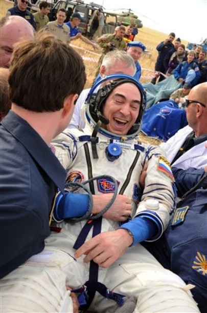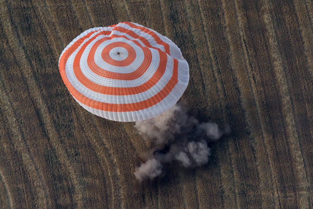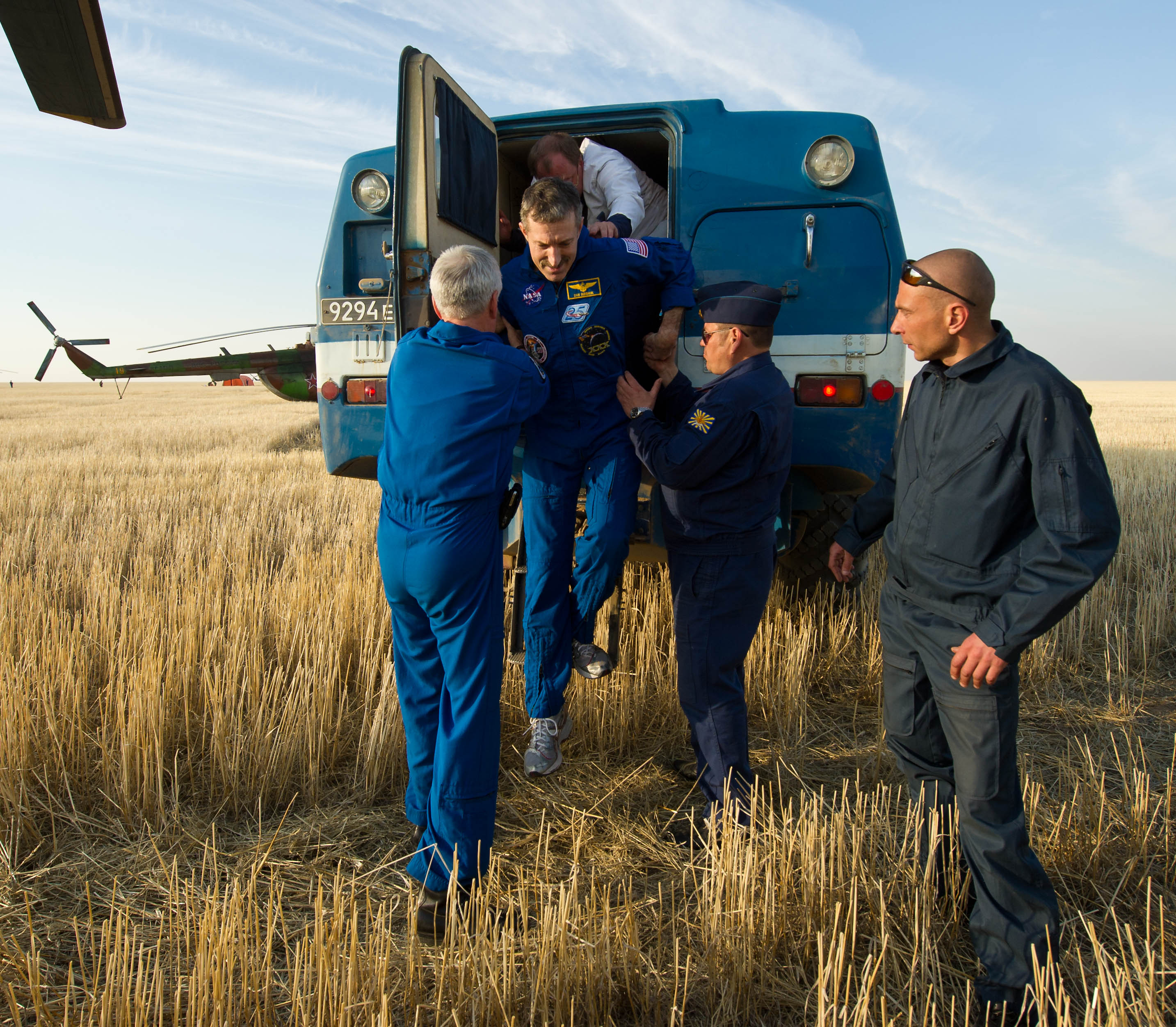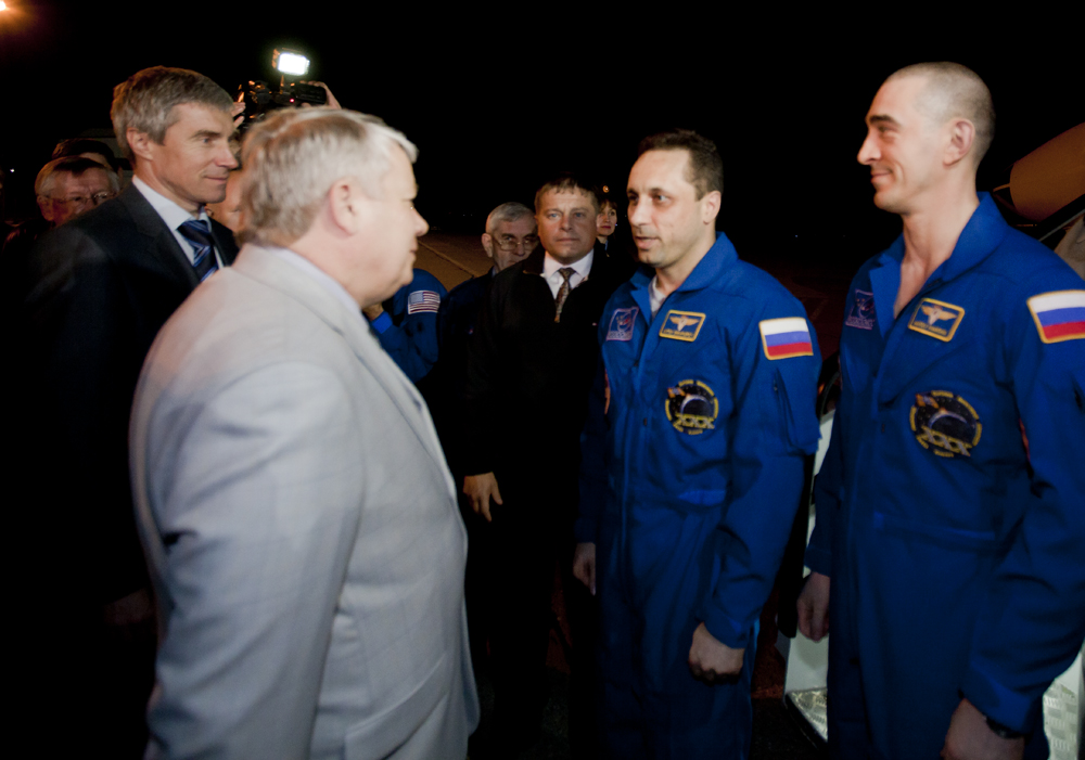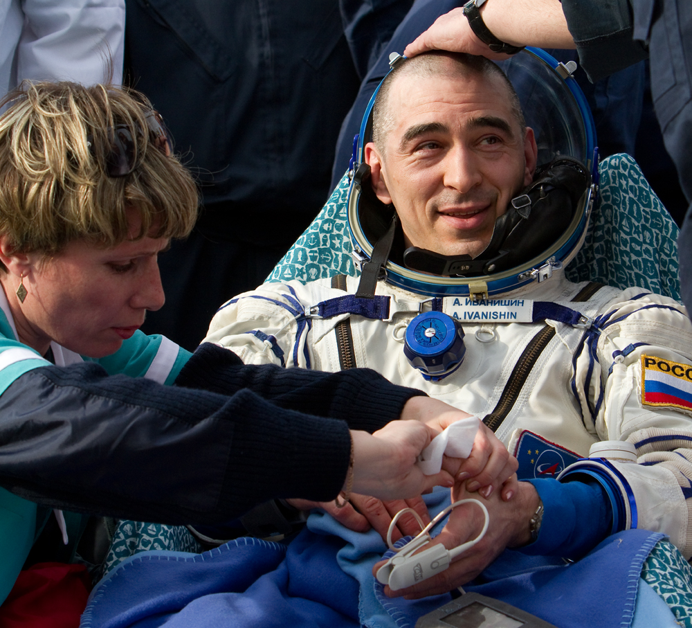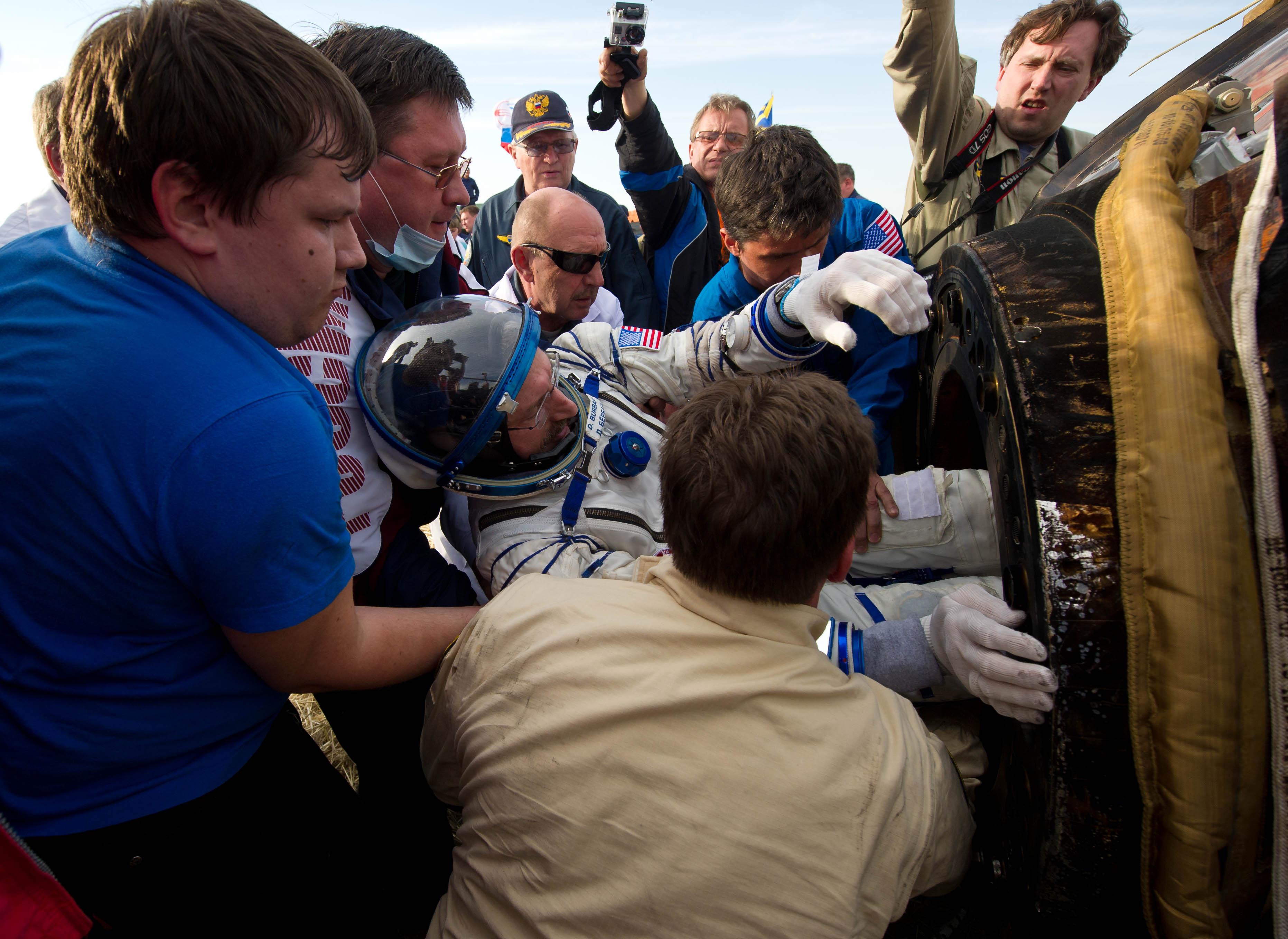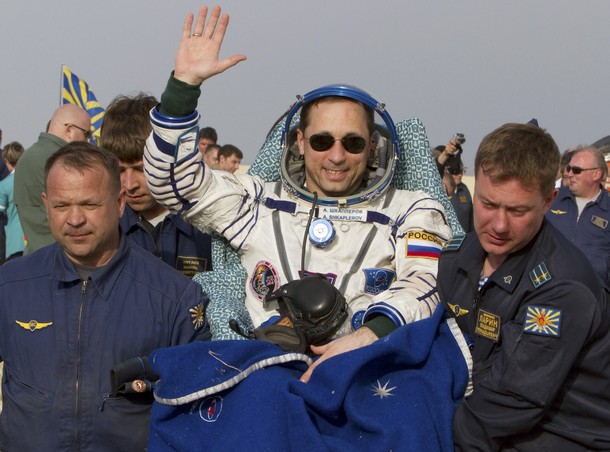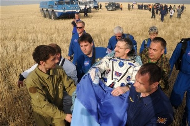 MKS-30 | Soyouz TMA-22A bord du SA, 19 avril 2012 : A bord du SA, 23 avril 2012 : Les hélicoptères prêts à décoller, 27 avril 2012 : Soyouz TMA-22 se sépare de Poïsk, 27 avril 2012 : Atterrissage de Soyouz TMA-22, 27 avril 2012 : Les équipes de récupération ouvrent l'écoutille : Les trois cosmonautes à bord du SA : Les cosmonautes sont extraits du SA : Les cosmonautes se reposent quelques instants : Les cosmonautes sont transportés vers l'hôpital de campagne : Les cosmonautes sortent de l'hôpital de campagne et partent à Koustanaï :